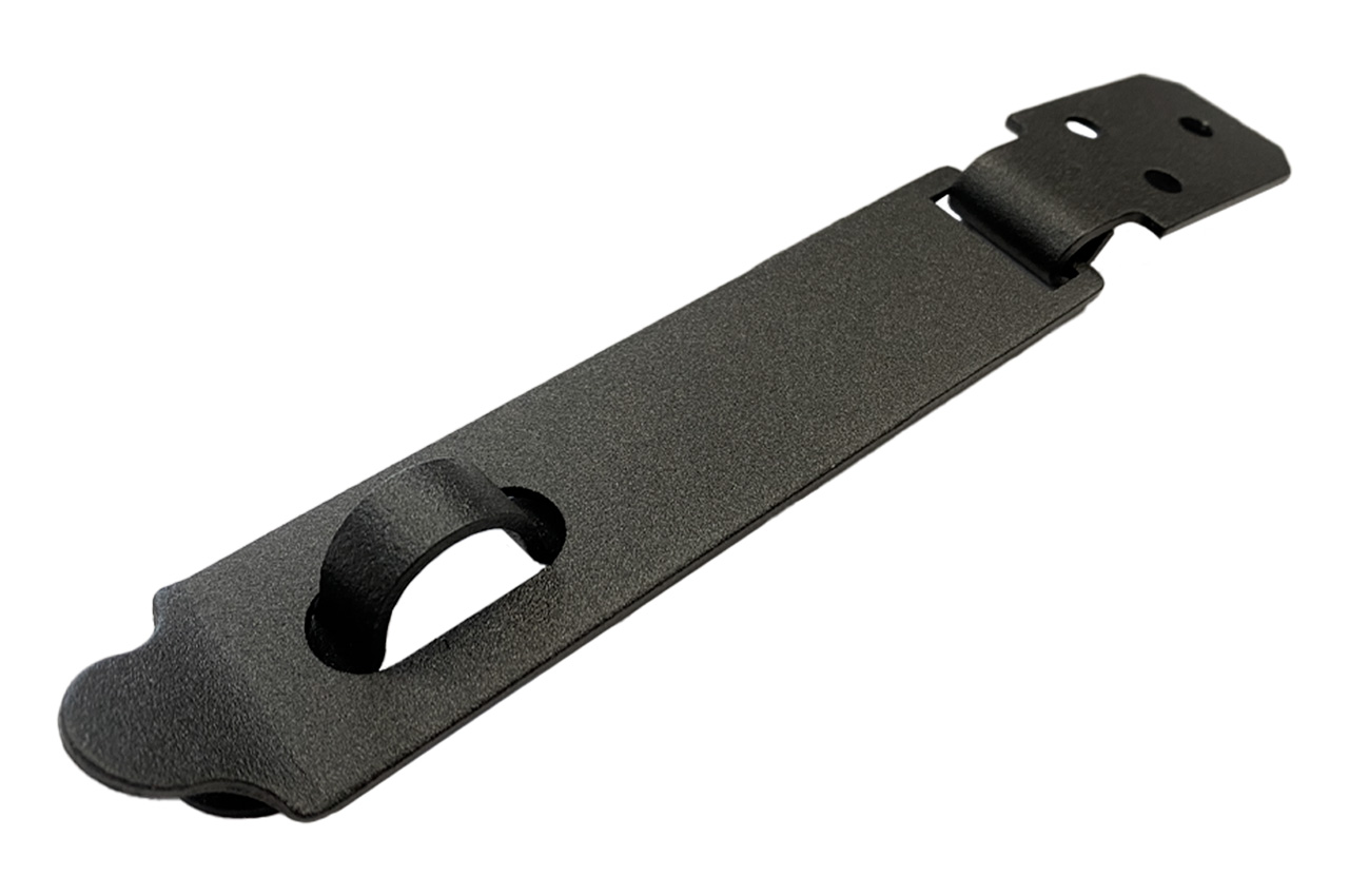 Накладка дверна KS-UKR - це надійний елемент захисту для дверей, призначений для кріплення навісного замка. Використовується як додатковий засіб безпеки в побутових, господарських, гаражних та інших приміщеннях. Має естетичне захисне покриття з ефектом «оксамит», що забезпечує не лише привабливий вигляд, а й стійкість до корозії та механічних пошкоджень. Конструкція включає фіксоване вушко для замка.