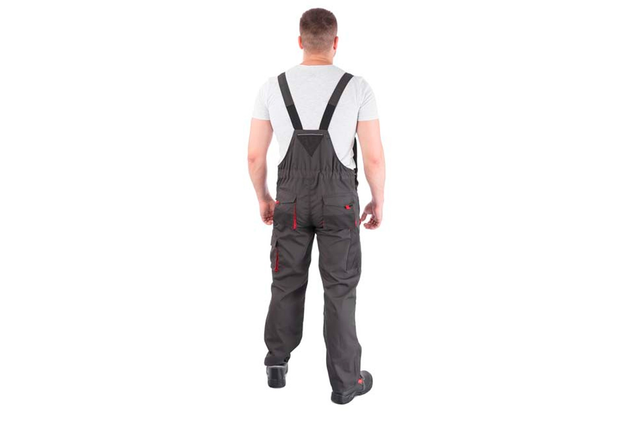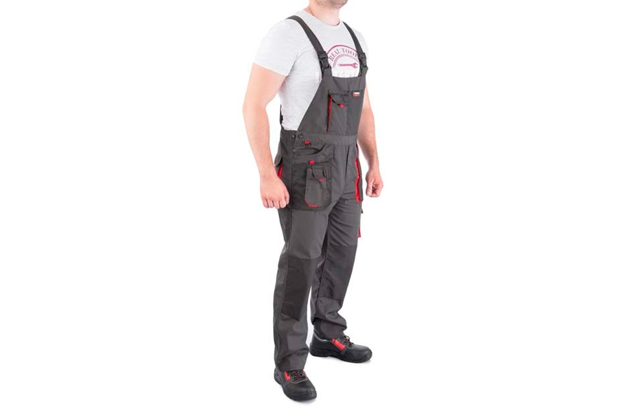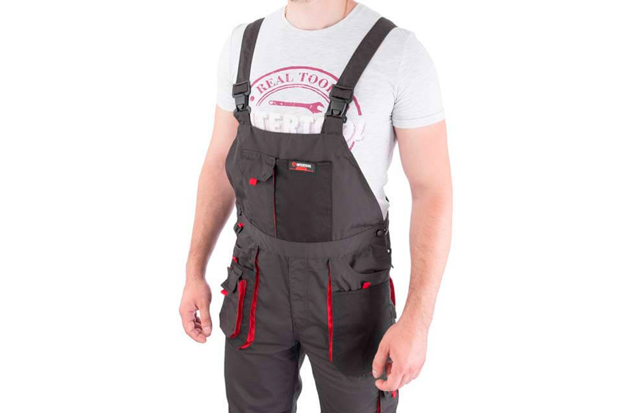 Напівкомбінезон пошитий з міцного і зносостійкого матеріалу, що і куртка з брюками: 80% поліестер, 20% бавовна з щільністю 260 г / м². Відмінно захищають працівника від забруднень і механічних пошкоджень. Безліч накладних та прорізних кишень дозволяють розвантажити руки майстру і виконувати роботу з зручністю і швидким доступом до всіх інструментів 11 функціональних міцних кишень для зберігання інструментів і аксесуарів Регульовані лямки з вставкою з еластичної резинки для налаштування необхідного розміру. Блискавка з вітрозахисним клапаном Напівкомбінезон прямого крою з бічними міцними гудзиками-заклепками Посилені шви, виконані потрійний рядком, підвищують міцність Накладки з чорної тканини для вставки наколінників забезпечують зручність в роботі на твердих поверхнях