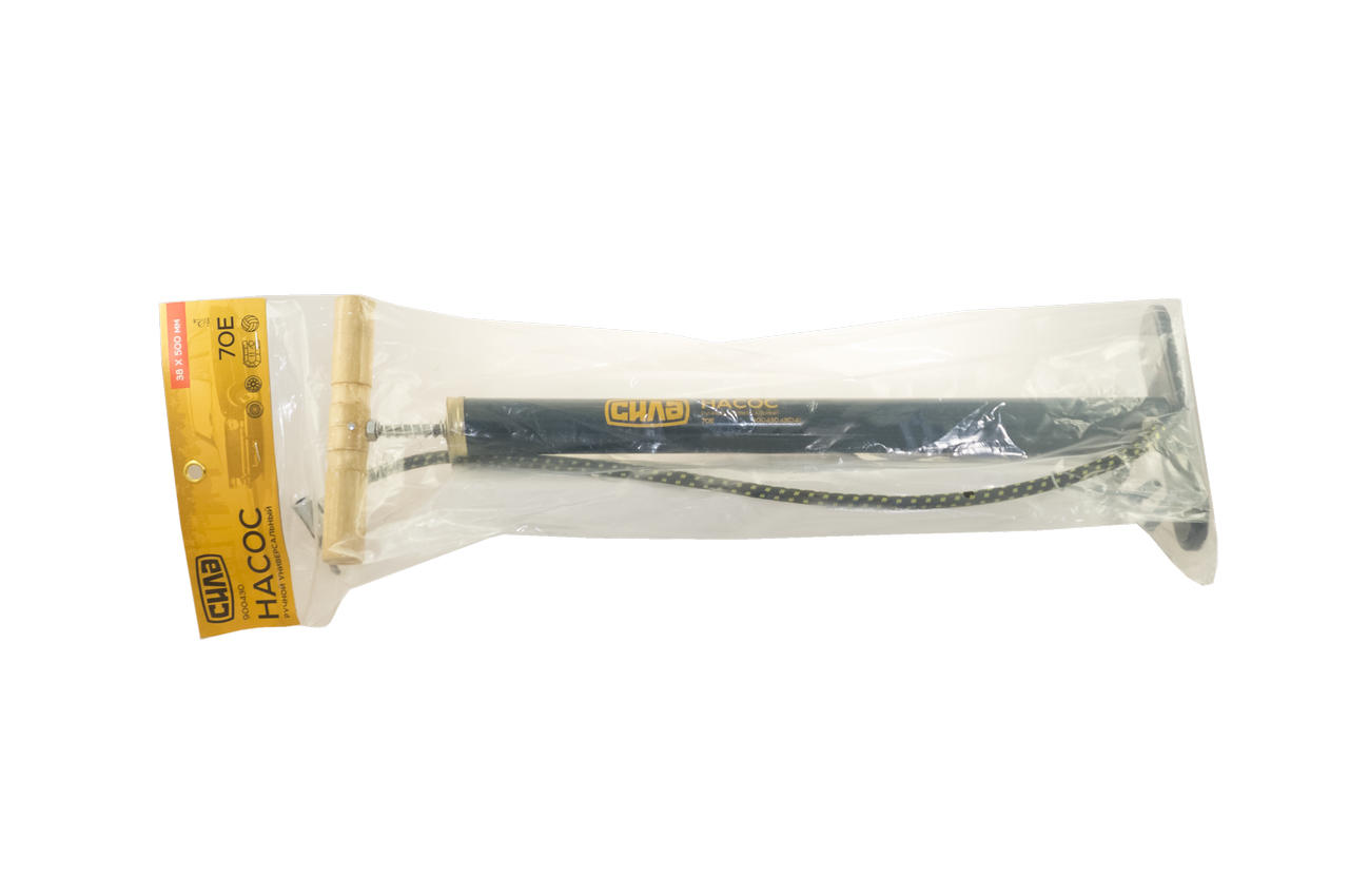 Насос ручної Сила, для швидкого нагнітання повітря в автомобільні шини, велосипедні колеса або колеса мотоциклів. Матеріал циліндра: метал; Робочий об'єм циліндра: 450см³; Розмір циліндра: 38х500мм; Тип насоса: ручний