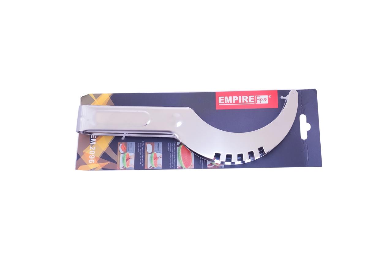 Ніж-щипці Empire довжиною 255 мм для швидкої і красивою обробки ягід - в топі товарів для домашньої кухні. Цим інструментом привітні господині вирізають з соковитих динь, кавунів, гарбуза та інших рослин ідеально рівні часточки м'якоті. Унікальна конструкція моделі дозволяє використовувати її і для чищення яблук. При цьому цукровий сік залишається всередині плодів, а отже, ймовірність забруднити скатертину завжди буде мінімальною. Виконаний з харчової нержавійки, ніж Empire довжиною леза 125 мм не піддається корозії. Він добре витримує механічні дії.