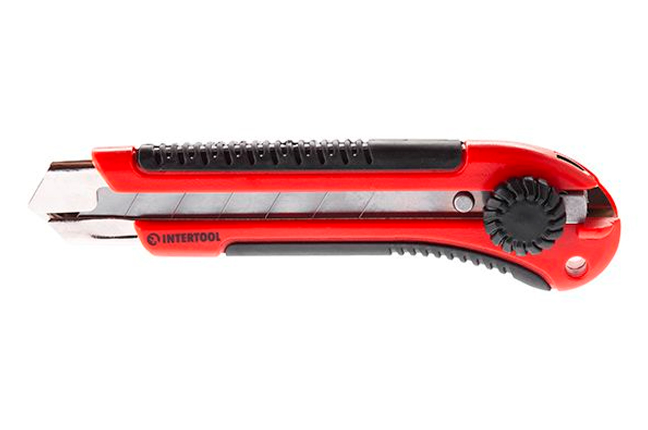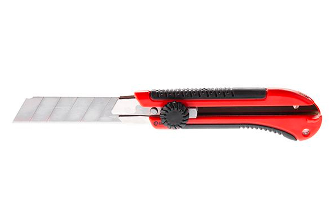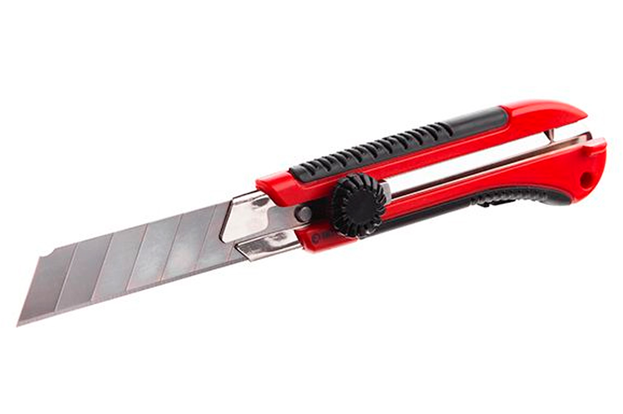 Потужний ніж з 25 мм сегментним лезом, застосовується на будівництвах, складах, магазинах, а також в домашній роботі. Велике потужне лезо легко справляється з ковроліном, гіпсокартоном, монтажною піною, скотчем, плівкою, папером і д.р. Особливості Потужне гостре лезо дозволяє застосовувати великі зусилля і швидко справляється з щільними матеріалами. Гвинтовий фіксатор надійно фіксує лезо в робочому положенні. Завжди гостре лезо, завдяки відламуються сегментам. Прогумований міцний корпус, роблять ніж зручним і надійним. Гострий ніж з висувним сегментним лезом, економить ваш час. Затупилися сегмент легко відламується і у Вас в руках знову гострий інструмент! Гвинтовий фіксатор робить вашу роботу більш безпечною. Послабивши фіксатор, Ви можете управляти довжиною леза. Закрутивши ж його, Ви намертво зафіксуєте лезо для роботи. У ножа пластиковий корпус і металева напрямна, завдяки чому ніж вийшов легким і в той же час надійним. Насічки на прогумованому корпусі не дають ножа вислизати і роблять роботу більш комфортною. Покладіть його в свій набір інструментів, і у Вас завжди під рукою надійний помічник. Тип леза: сегментное; Матеріал корпусу: прогумований пластик з металевою направляючої; Ширина леза: 25 мм; Фіксатор: гвинтовий