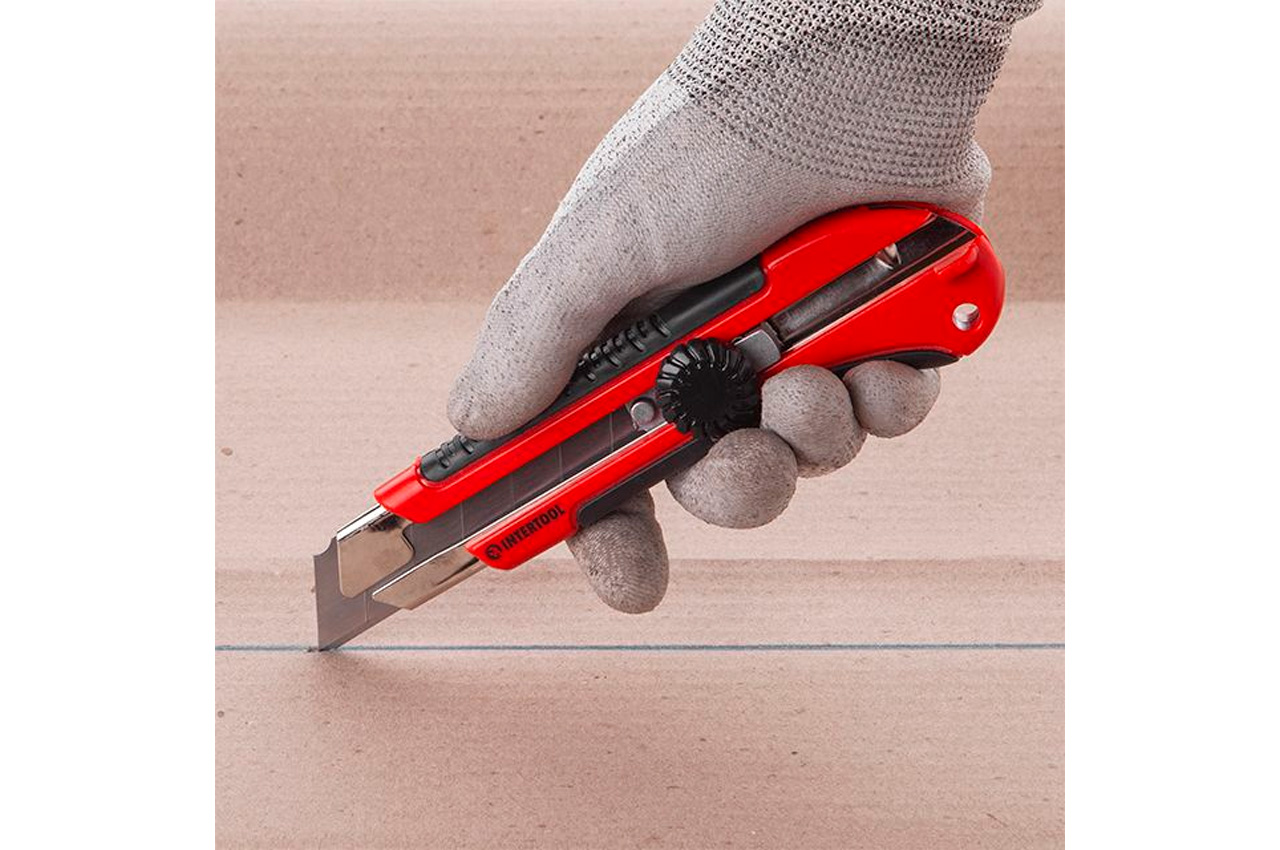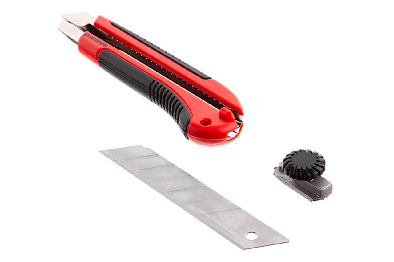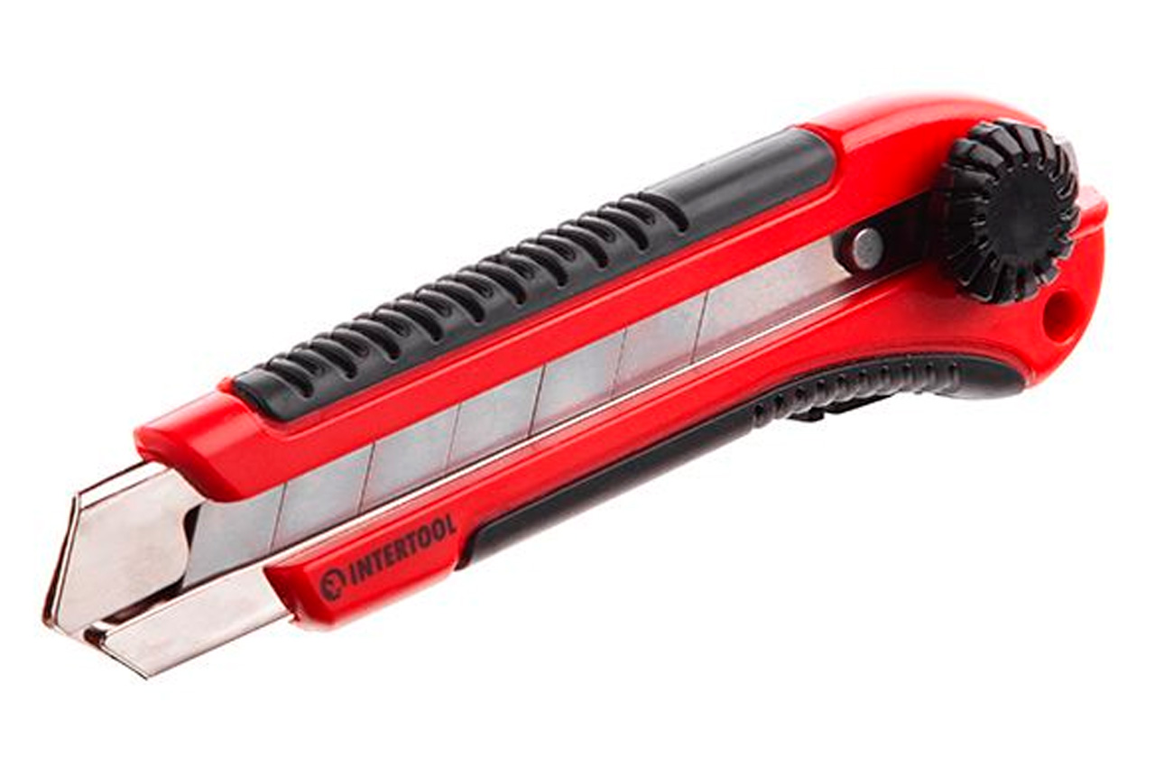 Потужний ніж з 25 мм сегментним лезом, застосовується на будівництвах, складах, магазинах, а також в домашній роботі. Велике потужне лезо легко справляється з ковроліном, гіпсокартоном, монтажною піною, скотчем, плівкою, папером і д.р. Особливості Потужне гостре лезо дозволяє застосовувати великі зусилля і швидко справляється з щільними матеріалами. Гвинтовий фіксатор надійно фіксує лезо в робочому положенні. Завжди гостре лезо, завдяки відламуються сегментам. Прогумований міцний корпус, роблять ніж зручним і надійним. Гострий ніж з висувним сегментним лезом, економить ваш час. Затупилися сегмент легко відламується і у Вас в руках знову гострий інструмент! Гвинтовий фіксатор робить вашу роботу більш безпечною. Послабивши фіксатор, Ви можете управляти довжиною леза. Закрутивши ж його, Ви намертво зафіксуєте лезо для роботи. У ножа пластиковий корпус і металева напрямна, завдяки чому ніж вийшов легким і в той же час надійним. Насічки на прогумованому корпусі не дають ножа вислизати і роблять роботу більш комфортною. Покладіть його в свій набір інструментів, і у Вас завжди під рукою надійний помічник. Тип леза: сегментное; Матеріал корпусу: прогумований пластик з металевою направляючої; Ширина леза: 25 мм; Фіксатор: гвинтовий