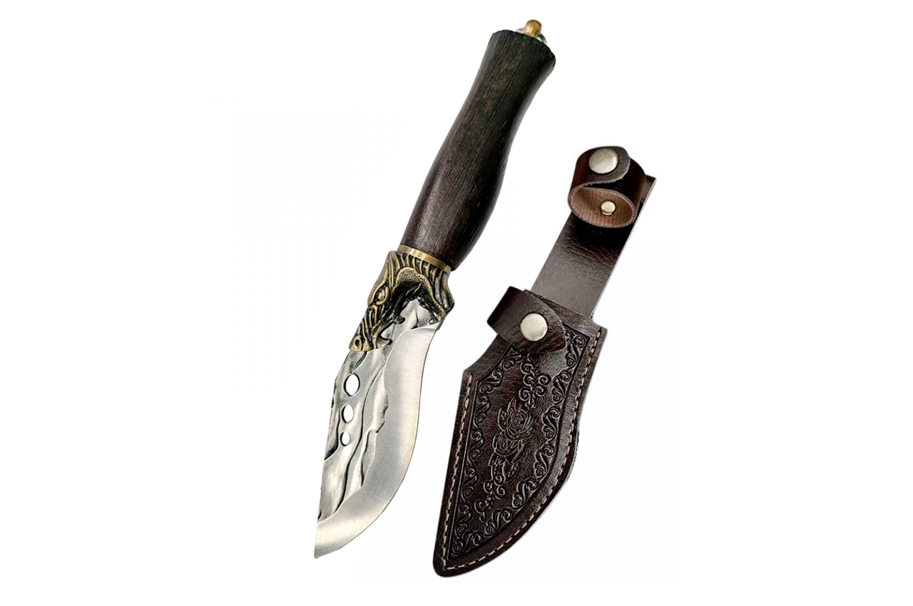 Ніж кований туристичний Hunt - 230мм [100+130мм] дракон із вигином у чохлі