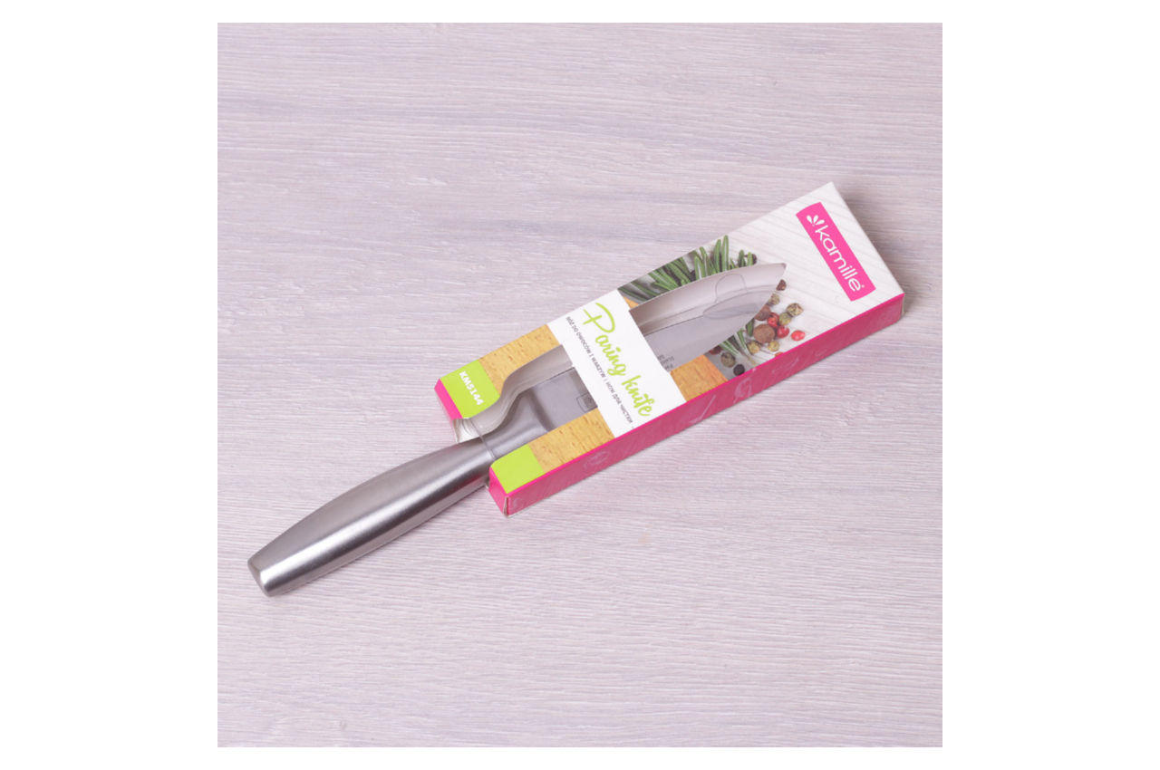 Ніж кухонний Kamille - це овочевий кухонний ніж, лезо якого виготовлено з високоякісної нержавіючої сталі, яка відрізняється міцністю та довговічністю, не схильна до корозії та впливу кислот, відповідає всім гігієнічним нормам і вимогам, не впливає на смак і проста у догляді.