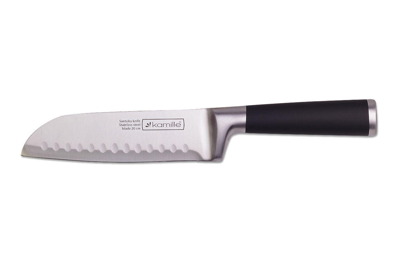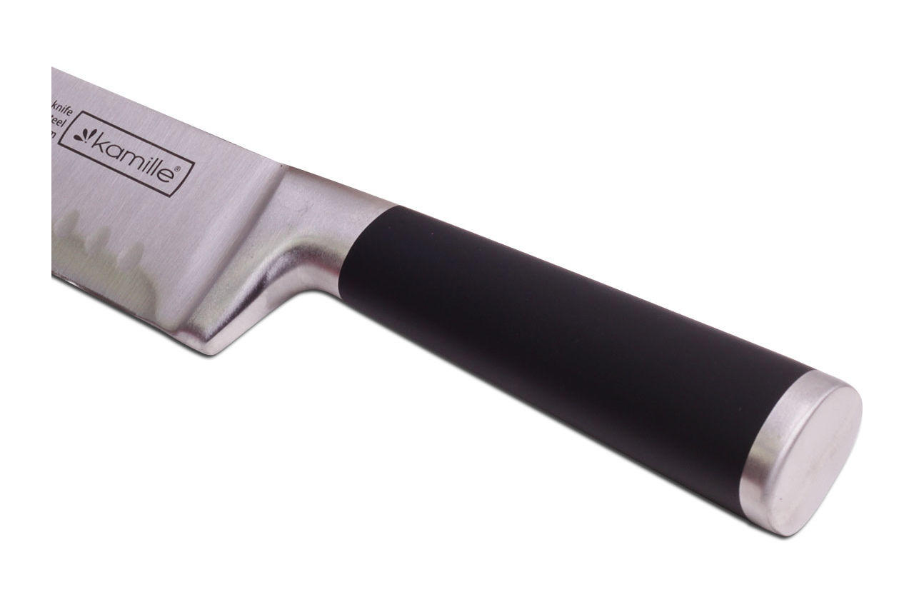 Ніж кухонний Kamille - це універсальний кухонний ніж, лезо якого виготовлено з високоякісної нержавіючої сталі, яка відрізняється міцністю і довговічністю, не схильна до корозії і впливу кислот, відповідає всім гігієнічним нормам і вимогам, не впливає на смак і проста в догляді.
