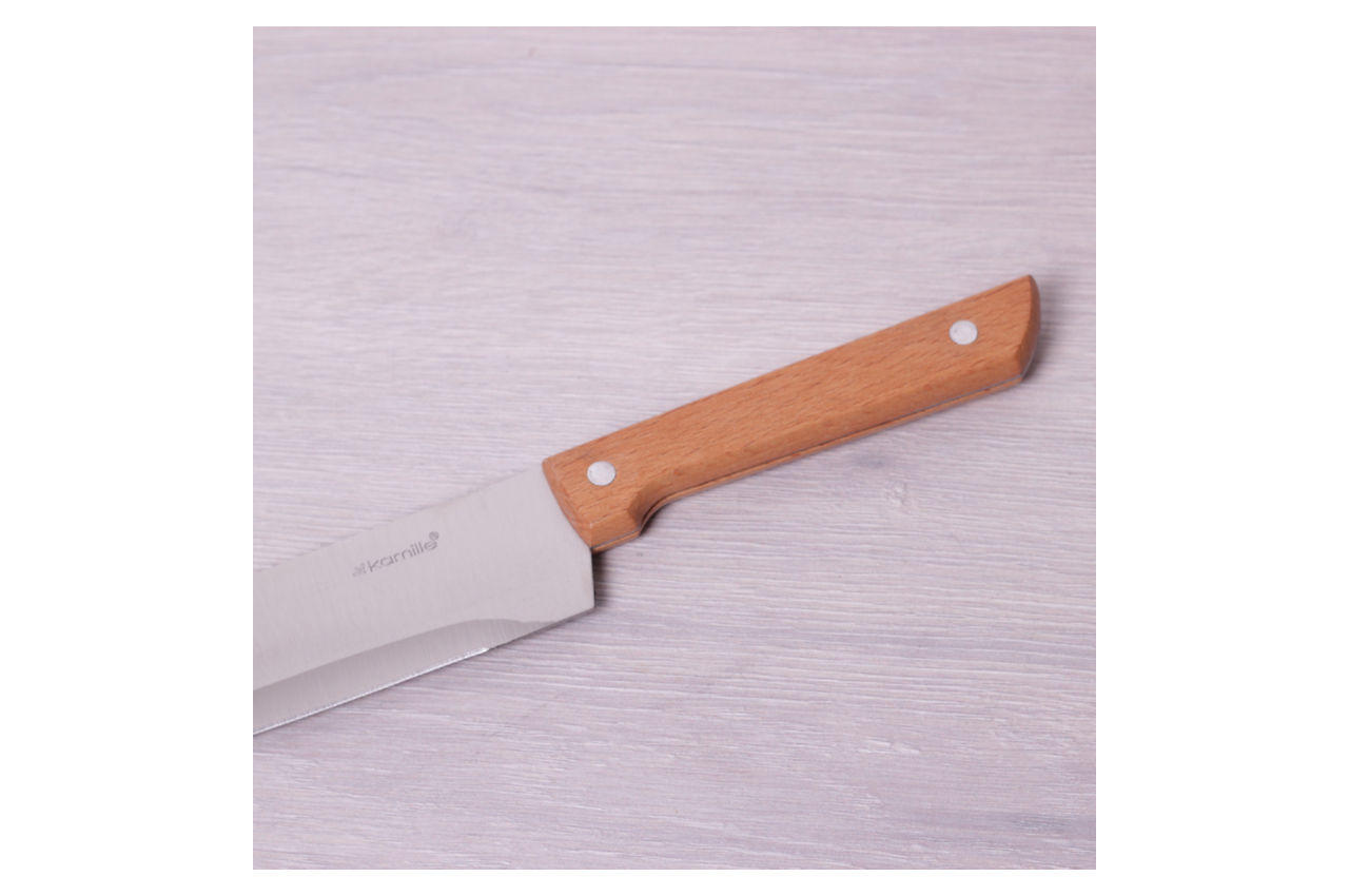 Ніж кухонний Kamille - це універсальний кухонний ніж, лезо якого виготовлено з високоякісної нержавіючої сталі, яка відрізняється міцністю і довговічністю, не схильна до корозії і впливу кислот, відповідає всім гігієнічним нормам і вимогам, не впливає на смак і проста в догляді.