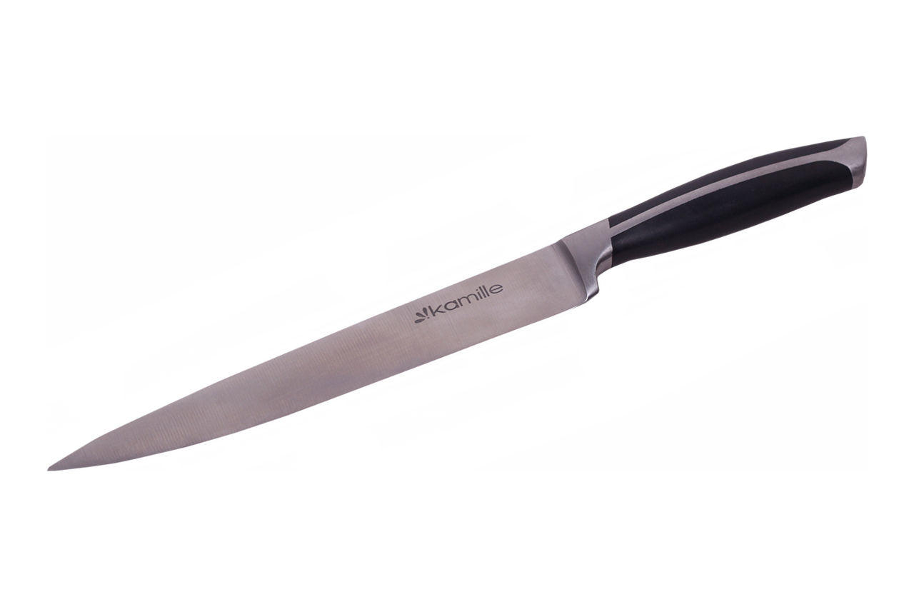 Ніж кухонний Kamille - це універсальний кухонний ніж, лезо якого виготовлене з високоякісної нержавіючої сталі, яка відрізняється міцністю та довговічністю, не схильна до корозії та впливу кислот, відповідає всім гігієнічним нормам і вимогам, не впливає на смак і проста у догляді.