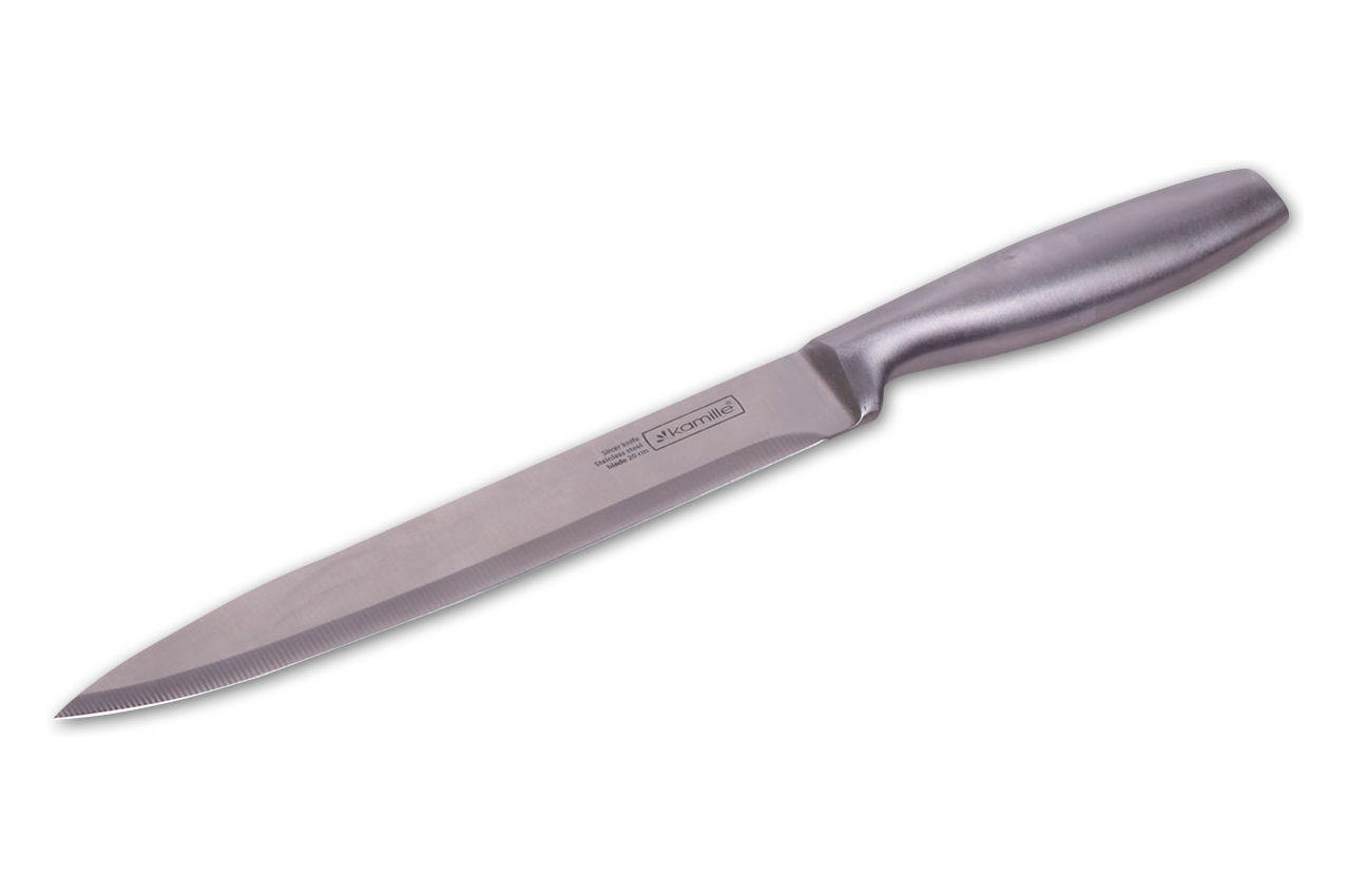 Ніж кухонний Kamille - це універсальний кухонний ніж, лезо якого виготовлене з високоякісної нержавіючої сталі, яка відрізняється міцністю та довговічністю, не схильна до корозії та впливу кислот, відповідає всім гігієнічним нормам і вимогам, не впливає на смак і проста у догляді.
