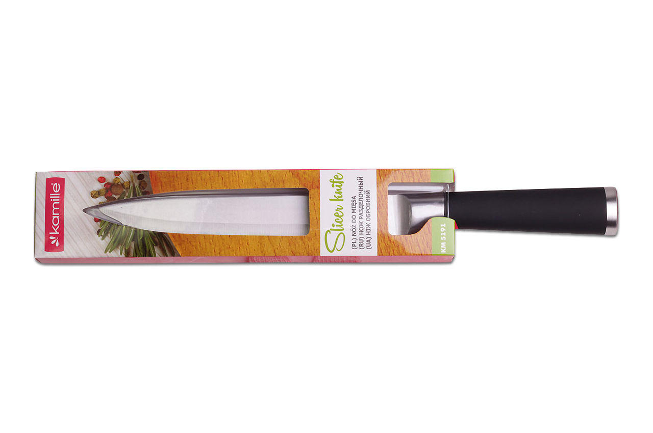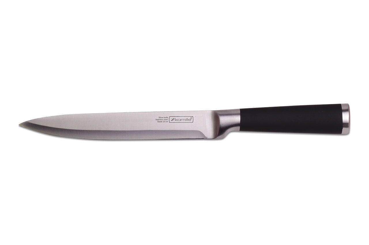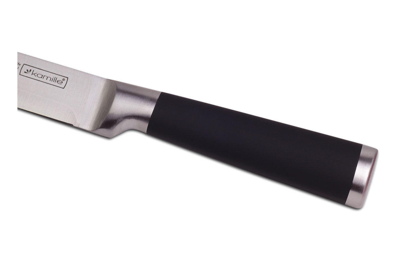 Ніж кухонний Kamille - це універсальний кухонний ніж, лезо якого виготовлено з високоякісної нержавіючої сталі, яка відрізняється міцністю і довговічністю, не схильна до корозії і впливу кислот, відповідає всім гігієнічним нормам і вимогам, не впливає на смак і проста в догляді.