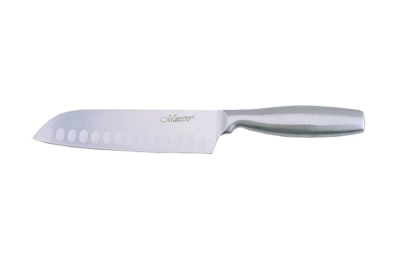 Ніж кухонний Maestro MR-1475 завдяки особливій формі леза навіть найдрібніші частинки продуктів до інструменту не прилипають. Легка рукоятка із пластику забезпечує зручність хвату. Професійному обробленню риби за 5 хвилин і без проблем сприяє надгостре лезо з нержавіючої сталі з підвищеною стійкістю до деформацій. Сам матеріал реакцію з інгредієнтами не вступає. Він не окислюється і не пересичує продукти іонами металу, що особливо важливо при захворюваннях шлунково-кишкового тракту.