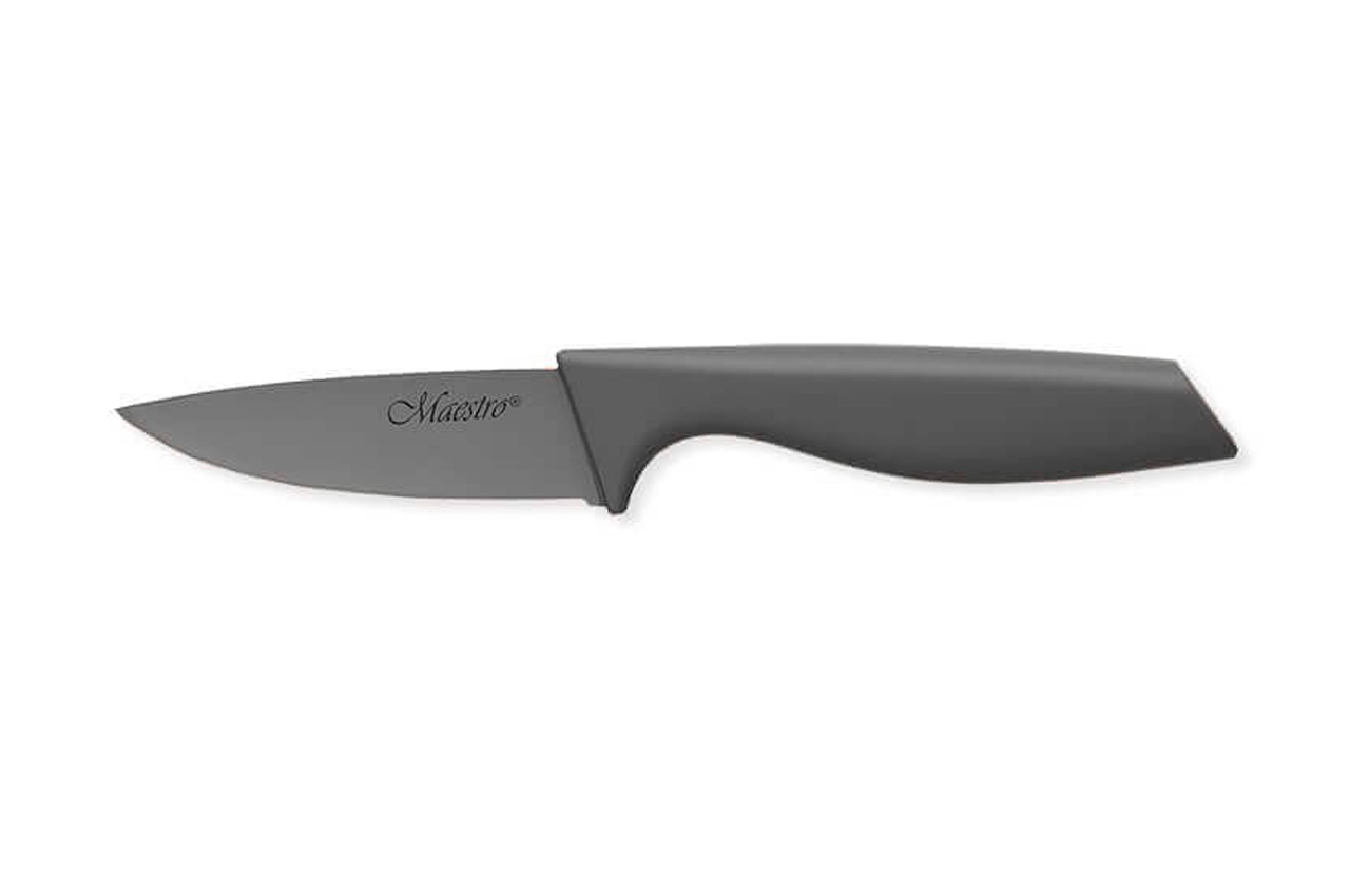 Ніж кухонний Maestro MR-1435 - це овочевий кухонний ніж, лезо якого виготовлено з високоякісної нержавіючої сталі, яка відрізняється міцністю та довговічністю, не схильна до корозії та впливу кислот, відповідає всім гігієнічним нормам і вимогам, не впливає на смак і проста у догляді.