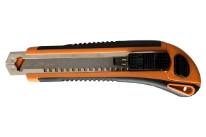 Має ергономічний пластиковий корпус з покриттям, яке, металеву направляючу, механізм автоматичної фіксації сегментованого змінного леза (2 шт.) Шириною 18 мм.