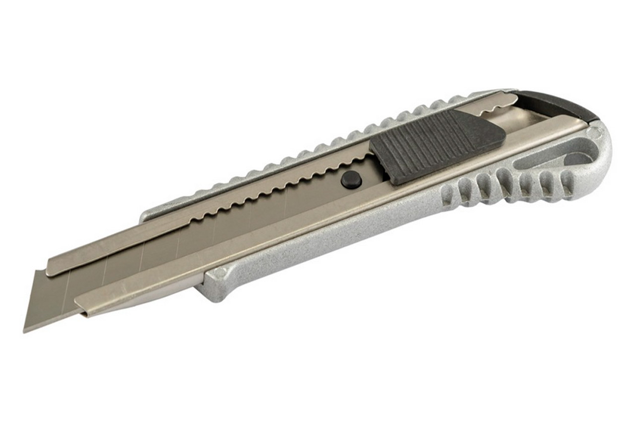 Міцний ніж з металевим корпусом і автоматичним фіксатором леза. Призначений для розрізання виробів з одношарової фанери, картону, полімерної плівки і інших подібних матеріалів.