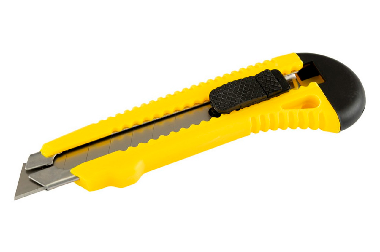 Має пластмасовий корпус зміцненої конструкції, металеву направляючу, кнопки висунення і фіксації сегментованого змінного леза шириною 18 мм, заміна якого здійснюється вручну через хвостову частину ножа.