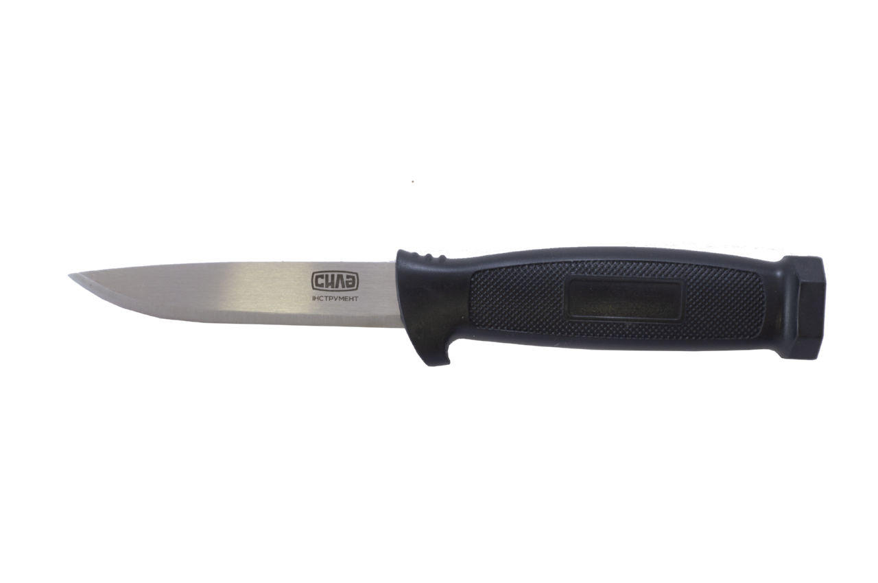 Ніж туристичний Сила - 218 мм стандарт - це якісна модель повсякденного туристичного нескладного ножа. Завдяки своєї надійності та перевіреним часом конструктивним особливостям, ніж відмінно виявить себе не тільки в дорозі, туристичному поході або рибалці, але і у повсякденному побуті. Відмінно загартоване, заточене і відшліфоване лезо буде служити вам довго та якісно, а також не вимагатиме особливих прийомів заточування. Рукоятка ножа має ребристе покриття, виготовлене з якісного пластику, завдяки чому вона приємна на на дотик і має протиковзкі властивості.