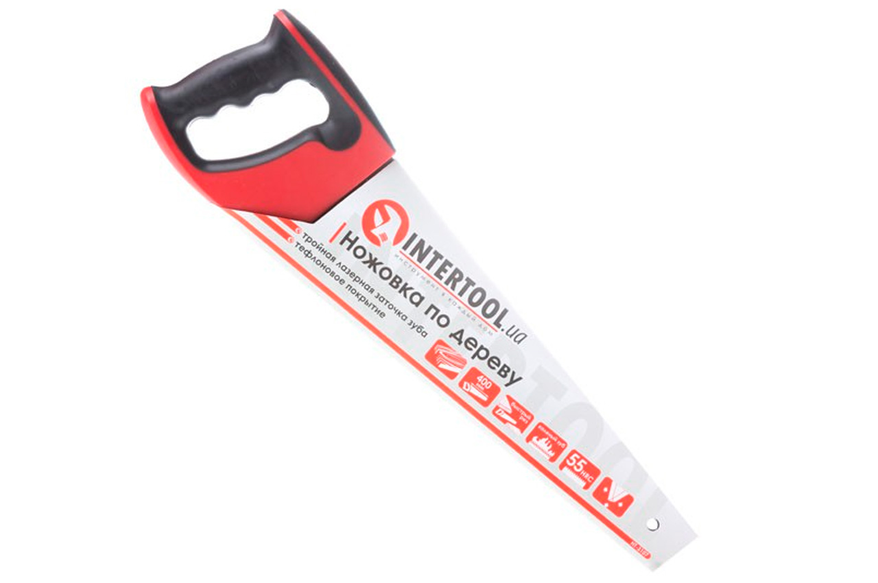 Ножівка по дереву Intertool - 400 мм потрійна заточка 7T х 1" з тефлоновим покриттям