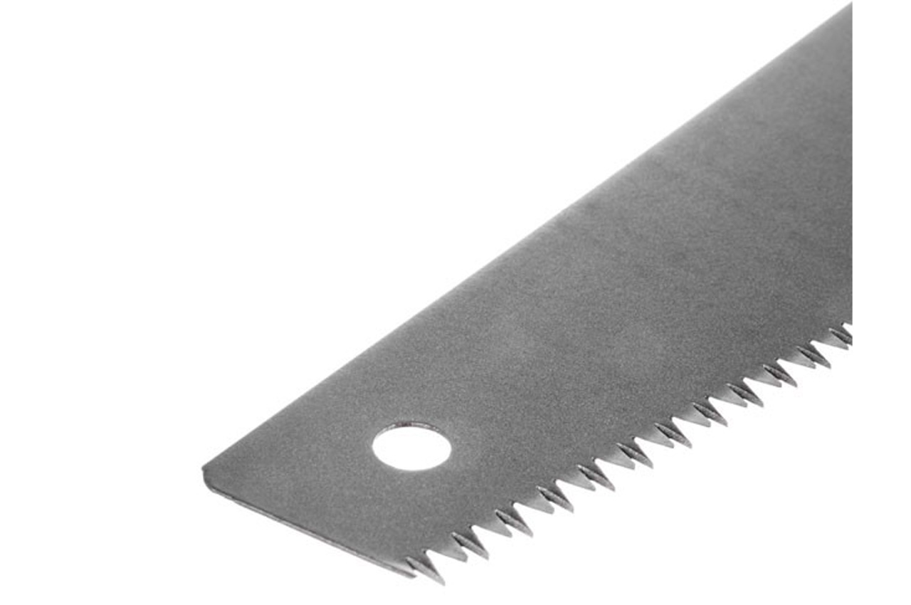 Ножівка по дереву виготовлена з високоякісної сталі твердістю 55 HRC. Полотно завдовжки 500 мм покрито з тефлоновим покритіемом, що дозволяє помітно зменшити тертя при роботі і підвищити швидкість пиляння, також захищає полотно від корозії. Розжарені зуби (7 зубів x 1 дюйм) особливої форми з потрійною заточуванням забезпечують швидкий рез як вперед, так і на себе. Ножівка оснащена зручною ручкою з високоміцного пластика з накладками з термопластичної гуми. Форма рукоятки дозволяє відкладати кути 45 ° і 90 °. Така ножівка відмінно підійде для поперечного розпилу дощок і брусків, матеріалів з фанери, ДСП, ДВП, плінтусів, наличників і ін. Застосування: для дерева; Кількість зубів: 7x1 "; Твердість за шкалою Роквелла: 55 HRC; Матеріал рукоятки: високоміцний пластик з гумовими накладками
