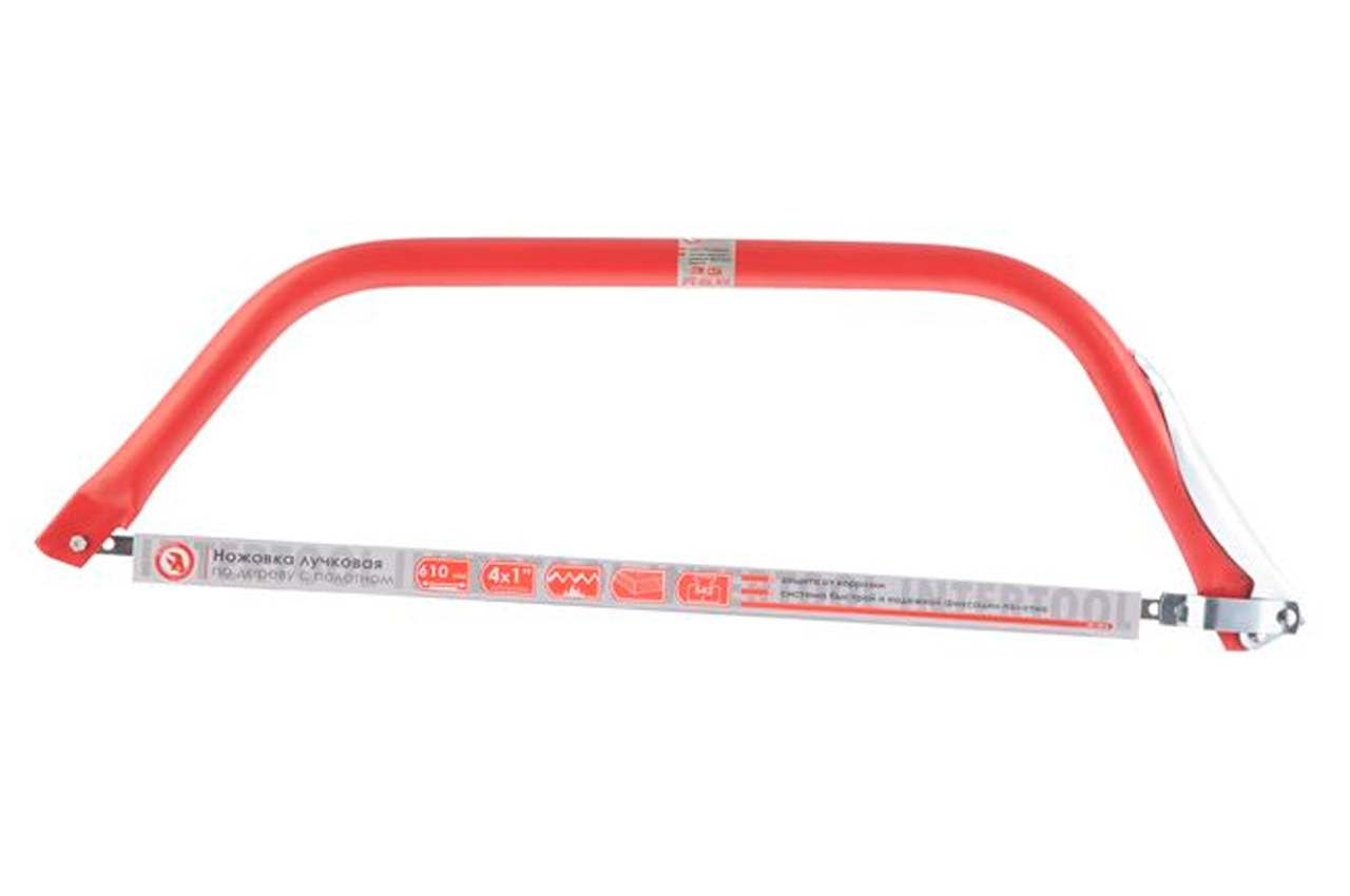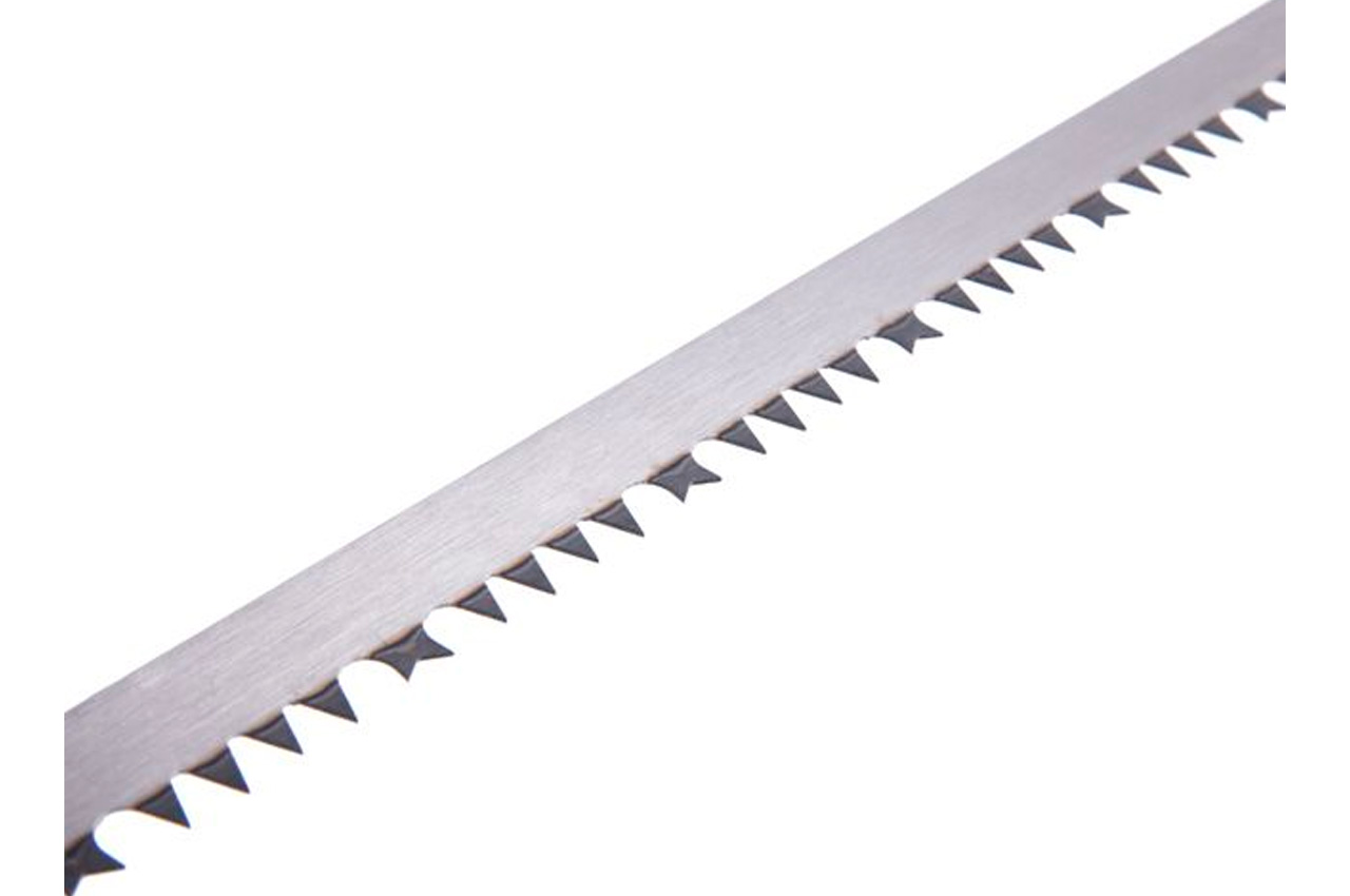 Лучкова ножівка з полотном довжиною 610 мм підходить для розпилювання дерев'яних заготовок діаметром до 200 мм. Вона має D-подібну форму і відносно невелику вагу. Полотно ножівки має розведені в дві сторони зуби, які максимально ефективно справляються з деревиною. Застосування: для дерева; Кількість зубів: 3,5х1 "зуб / дюйм
