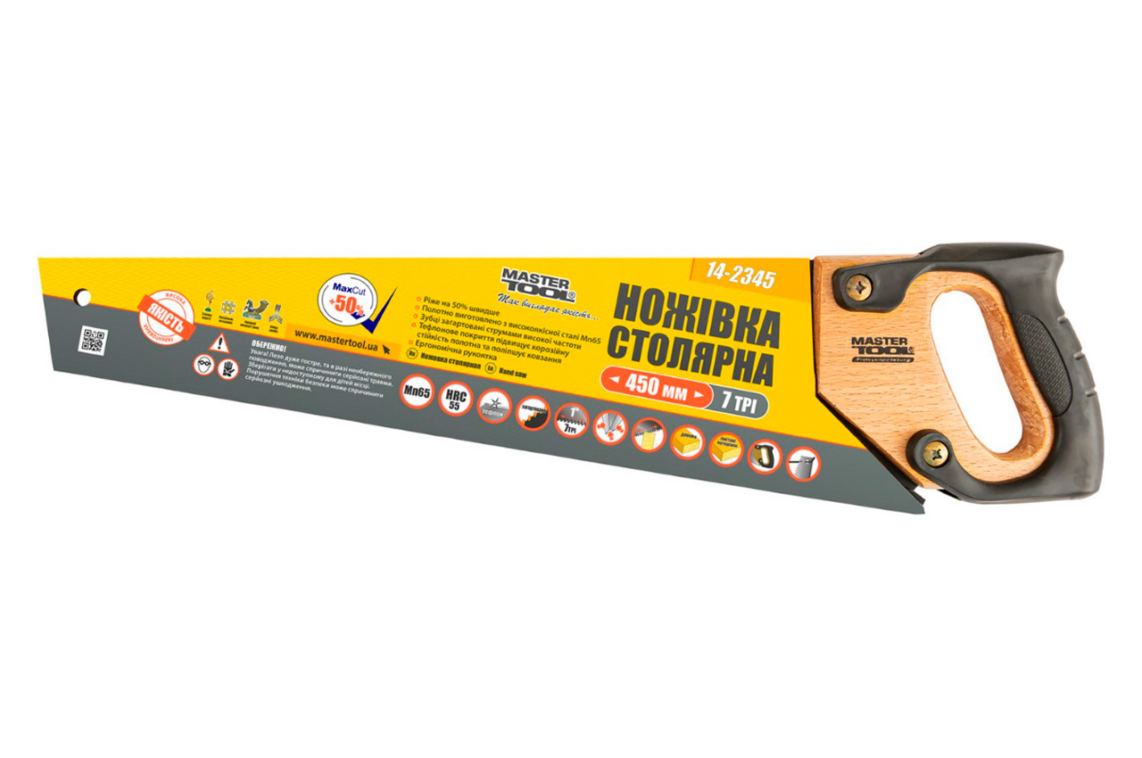 Ножівка по дереву Mastertool - 450 мм 7T х 1" , потрійна заточка з тефлоновим покриттям
