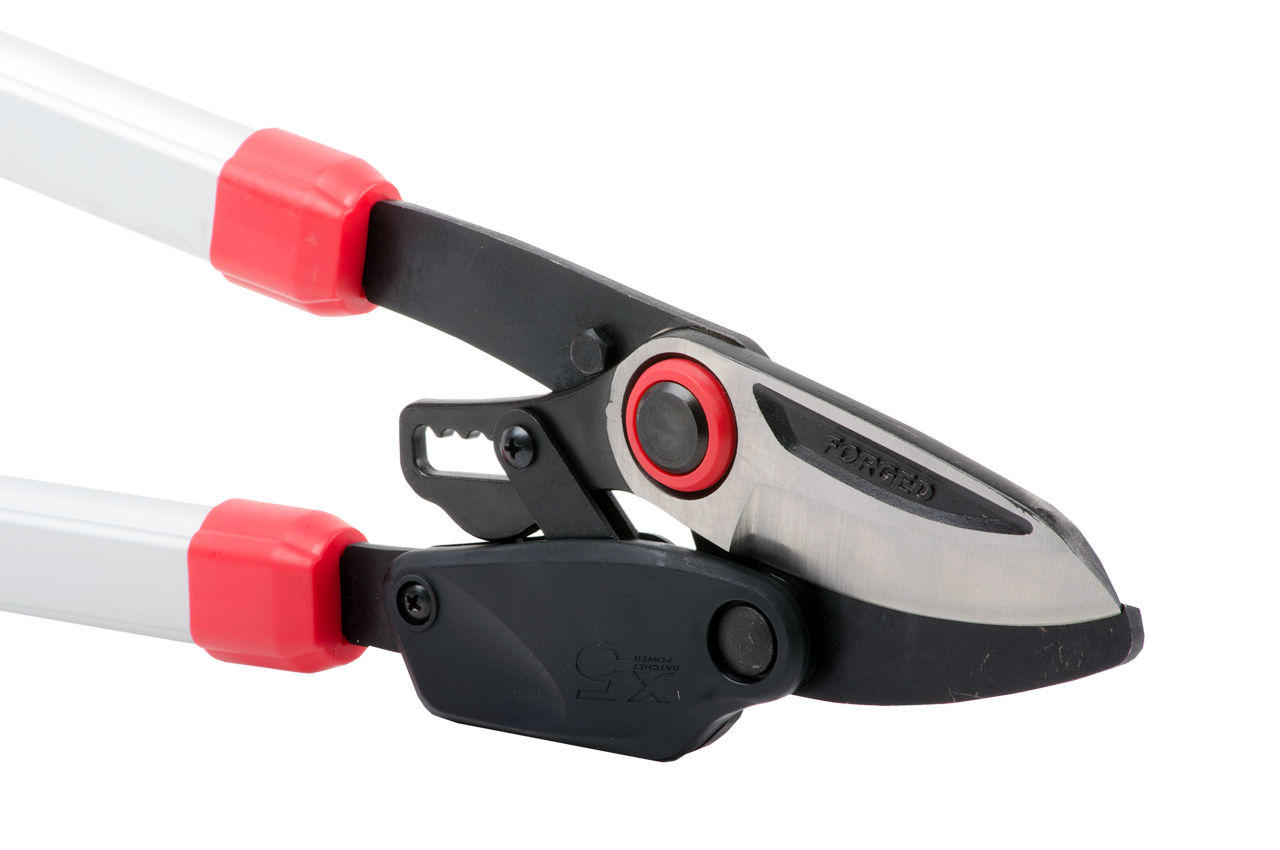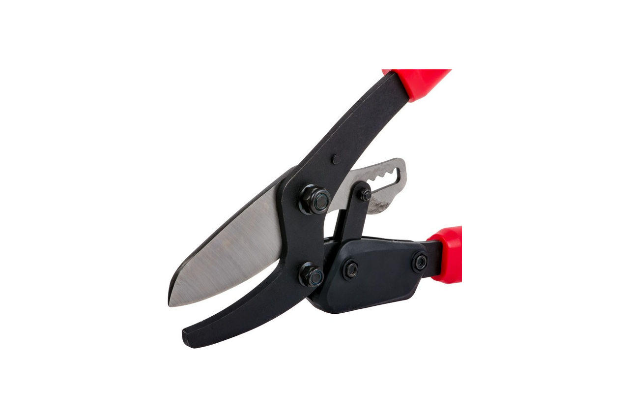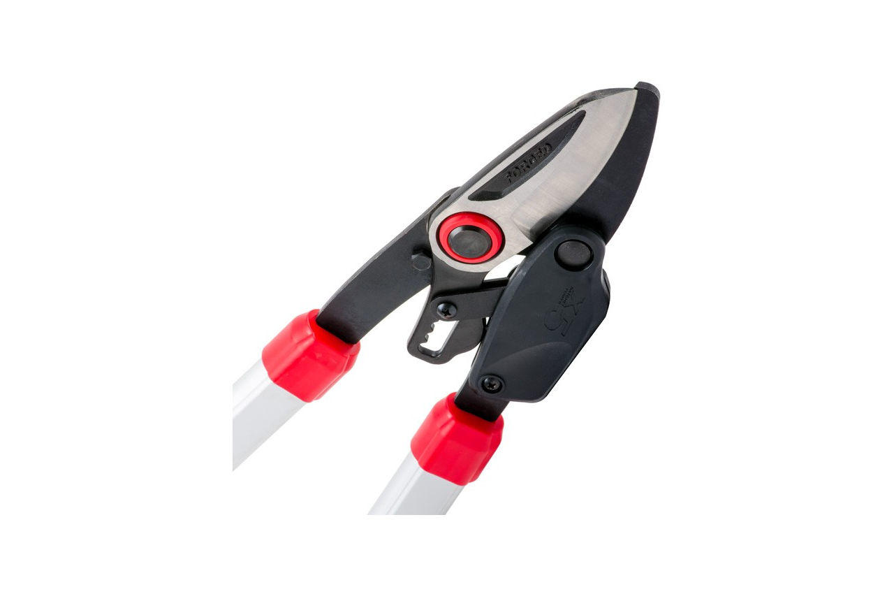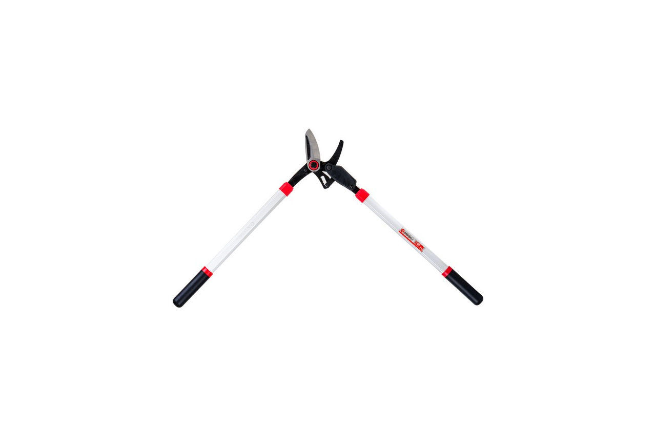 Робота ставати набагато легше, завдяки потужним лез з високолегованої сталі з 5-ти ступінчастим храповим механізмом. Ріже живу товсту гілку (до 40 мм) без особливих зусиль. Легкі і в той же час міцні алюмінієві ручки не обтяжують інструмент. Овальний профіль в поєднанні з ребрами жорсткості підвищують надійність всієї конструкції. Різати сучкорізом дуже просто! Підійде також для обрізки дерев на висоті, загальна довжина сучкоріза - 75 см. Комфорт під час роботи забезпечують зручні шорсткі ручки. Максимальний діаметр різу: 40 мм; Матеріал рукояток: алюміній; Матеріал леза: сталь; Довжина леза: 100 мм; Загальна довжина: 750 мм