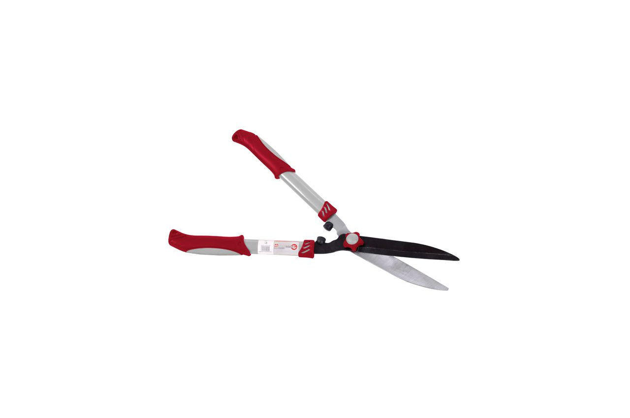 Секатори для обрізки гілок з прямими лезами довжиною 185 мм, відмінно підходять для формування живоплоту, а також для обрізки гілок кущів і дерев. Особливості Сталеві гострі леза із заводською заточуванням легко справляються з обрізанням живоплоту і зелених насаджень в саду. Регулювання відстані між ріжучими крайками дозволяє здійснювати рівний і акуратний рез. Легка і компактна конструкція забезпечує комфортну роботу навіть при тривалій роботі, при формуванні фігур, а також обрізку нижніх і внутрішніх гілок. Гумові накладки на рукоятках не дають вислизати ножиць з рук, а наявність демпфера зменшує силу удару в момент різу. Гумові накладки на рукоятках не вислизають з рук і гарантують максимально зручний хват під час роботи. Наявність демпфера зменшує силу удару в момент різу. Регулятор в формі квітки дозволяє прибирати зазор між ріжучими крайками. Візьміть ці ножиці і доглядайте за зеленими насадженнями в саду з задоволенням. Особливості: Регулювання зазору між лезами; Загальна довжина: 565 мм
