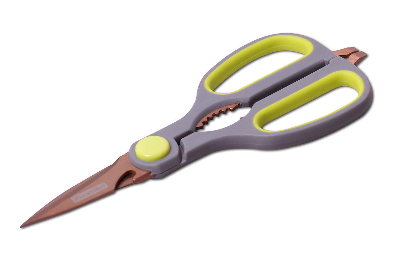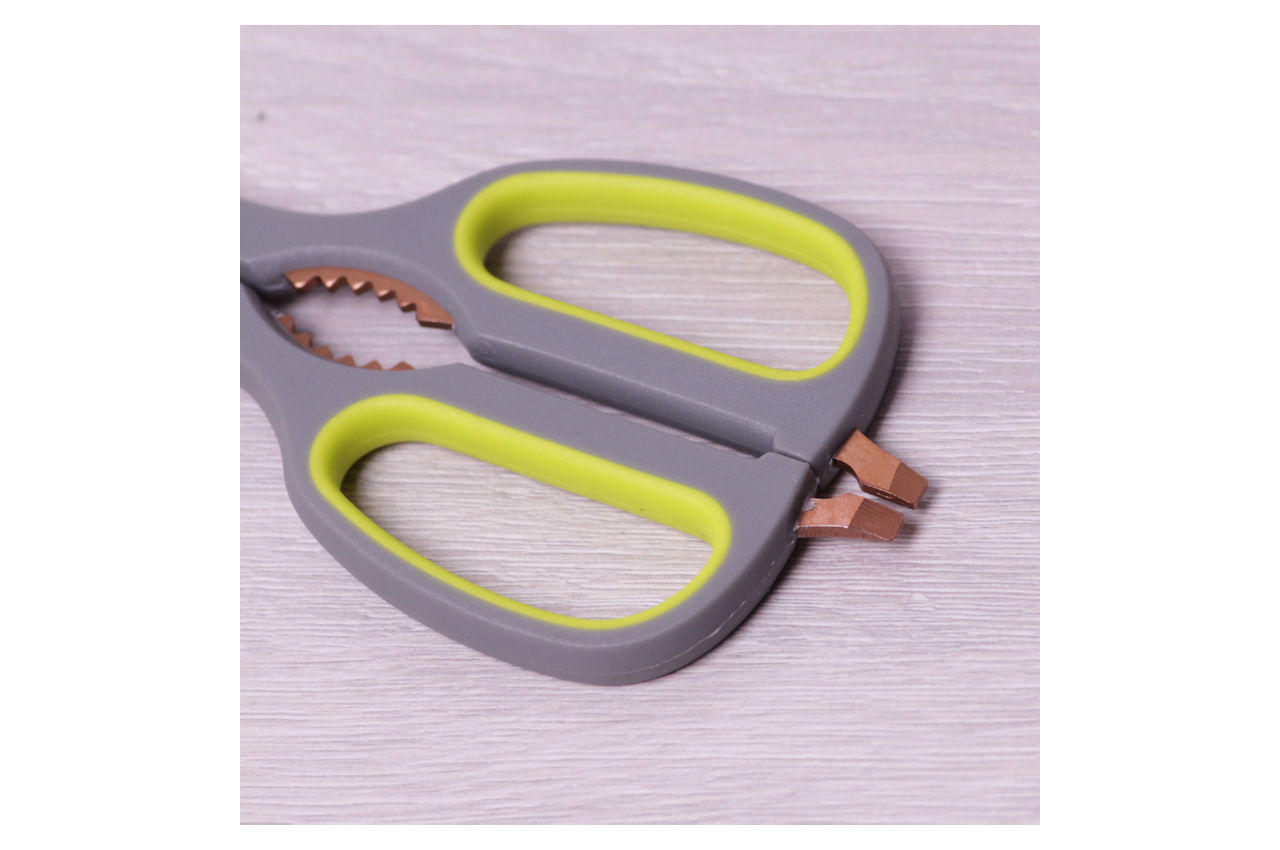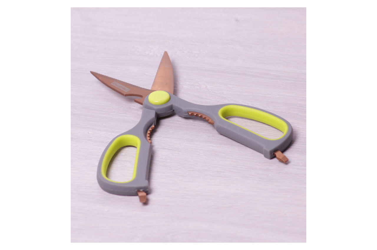 Ножиці кухонні Kamille виготовлені з якісних матеріалів із використанням сучасних технологій. Вони мають міцний механізм і оснащені спеціальними антиковзаючими вставками на ручках, завдяки чому вони не ковзатимуть у руці. У застосуванні ножиці Kamille досить прості та зручні і неодмінно прослужать Вам дуже довгий час.