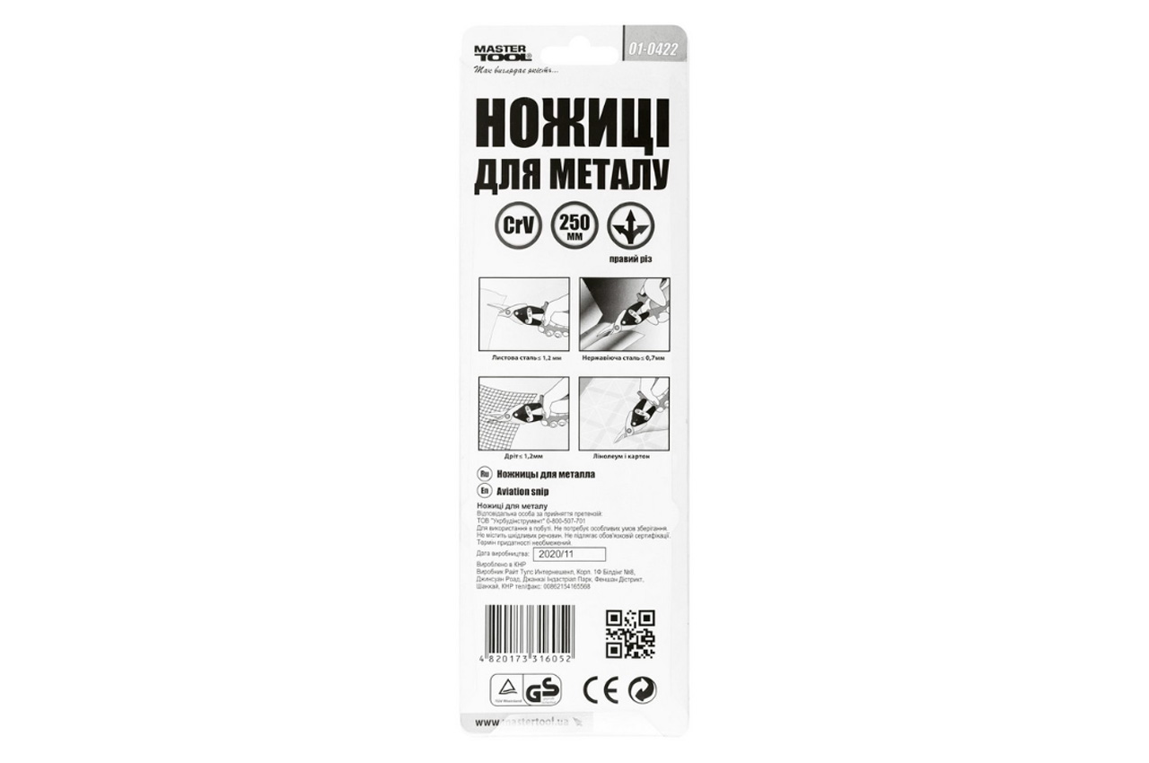 Ножиці по металу Mastertool - 250 мм праві 01-0422