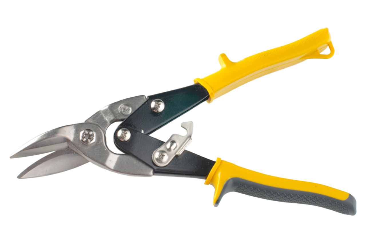 Ножиці по металу правосторонні 250 мм призначені для фігурного різання по пластику, металу максимальною товщиною до 1.2 мм. Ножиці виготовлені куванням з хром-ванадієвої сталі. Ергономічна двокомпонентна рукоятка забезпечує зручність захоплення. Матеріал рукоятки: пластик, термопластичная гума; Тип: праві