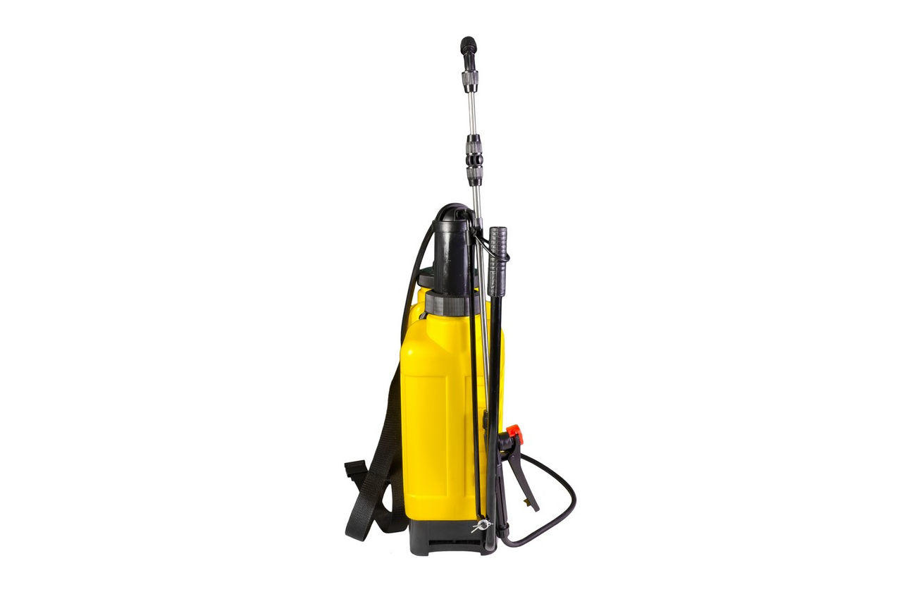 Обприскувач складається з бака для рідини, насоса, обприскувальну системи (гумовий шланг довжиною 1.2 метра, кран, металева трубка і форсунки), насосного важеля і ременів для утримання на спині. Всі частини обприскувача виготовлені з пластику, крім металевої трубки. Довжина металевої трубки 115 см. Ємність бака для рідини 12 літрів, робочий тиск 2.5 - 3.5 бар. Насосний важіль виготовлений з металу і має TPR покриття. Обприскування відбувається завдяки гідравлічній системі. Обприскувач гідравлічний використовується для профілактики і лікування хвороб рослин, боротьби з комахами, обприскуванні рослин і садів, дезінфекції в будівлях.