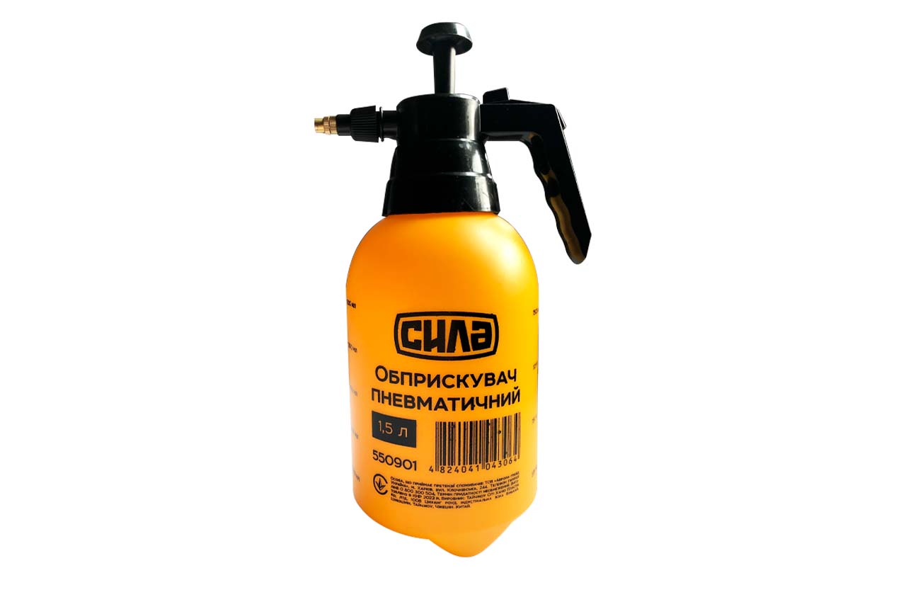 Пневматичний обприскувач Сила - складається з бака для води, насоса та кришки. Обприскувач виготовлений повністю із пластику, крім насадки з латуні. Робочий тиск 2.5 - 3.5 бар. Пневматичний обприскувач використовується для профілактики та лікування хвороб рослин, боротьби з комахами, обприскування рослин і садів, дезінфекції в будинках.