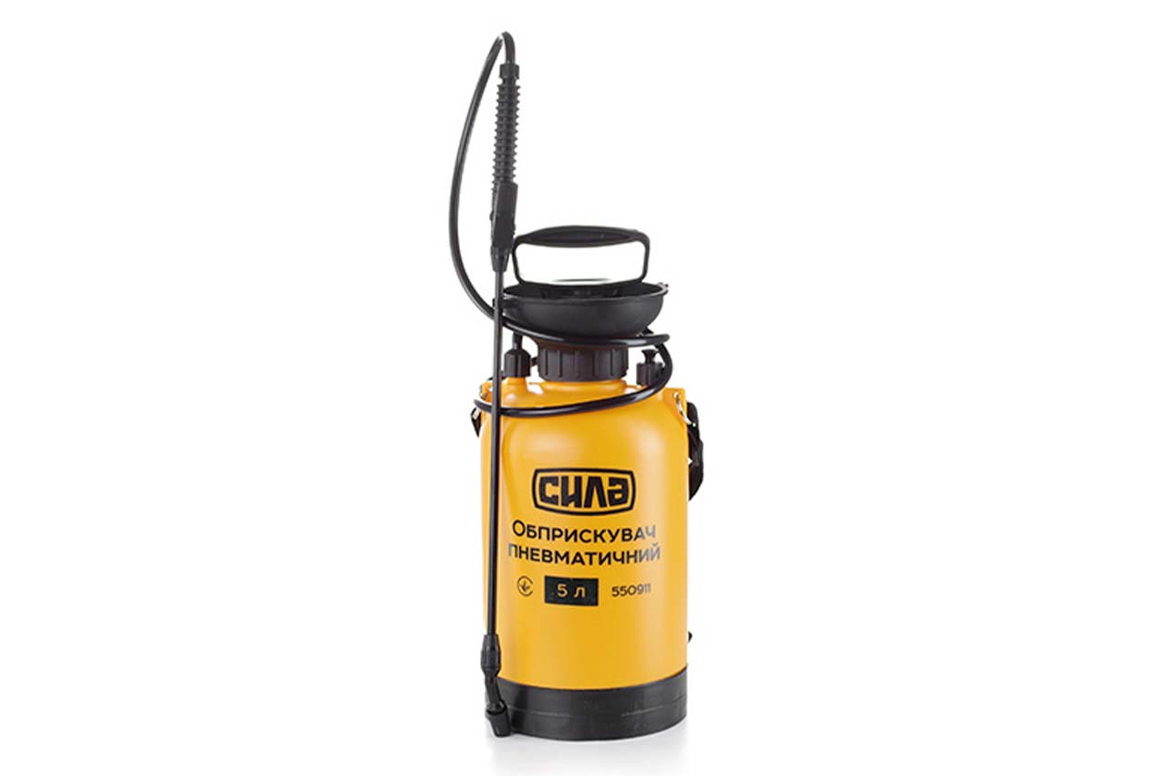 Пневматичний обприскувач Сила - складається з бака для води, насоса та кришки. Обприскувач виготовлений повністю із пластику, крім насадки з латуні. Робочий тиск 2.5 - 3.5 бар. Пневматичний обприскувач використовується для профілактики та лікування хвороб рослин, боротьби з комахами, обприскування рослин і садів, дезінфекції в будинках.