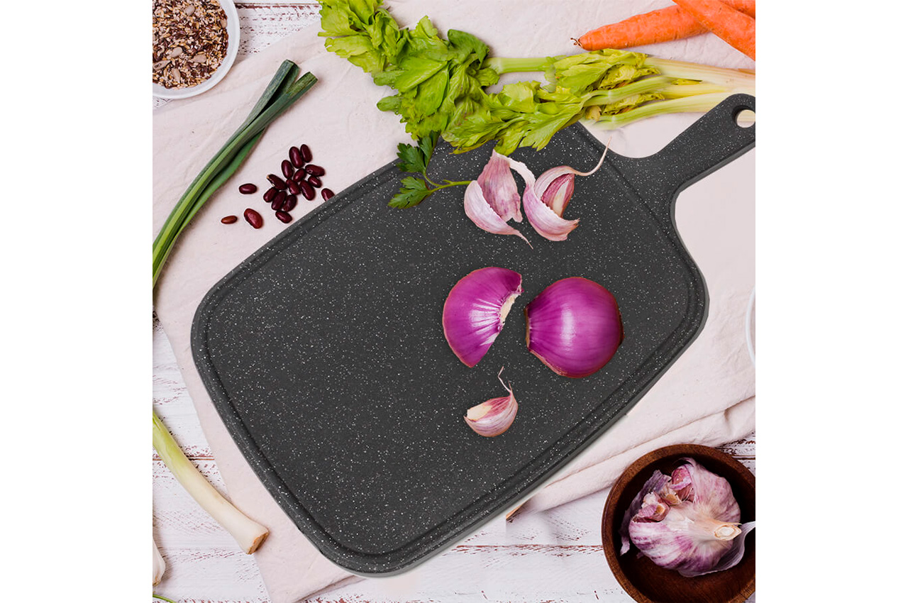 Дошка обробна MAESTRO MR1654-41 - дуже зручний і практичний аксесуар на вашій кухні. Має нековзну поверхню з антибактеріальним захистом. Виготовлена з безпечного харчового пластику. Її можна використовувати з двох сторін. На такій поверхні легко обробляти м'ясо, рибу, нарізати овочі, фрукти та інші продукти. Дошка легко миється, не дряпається і не затупливает ножі.