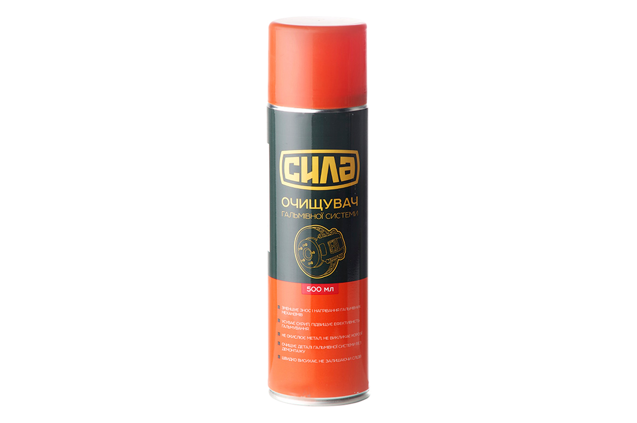 Очищувач гальмівної системи Сила - призначений для очищення різних компонентів гальмівної системи автомобіля. Ефективно видаляє жири, олії, пил, іржу та інші забруднення, які можуть негативно впливати на роботу гальм.