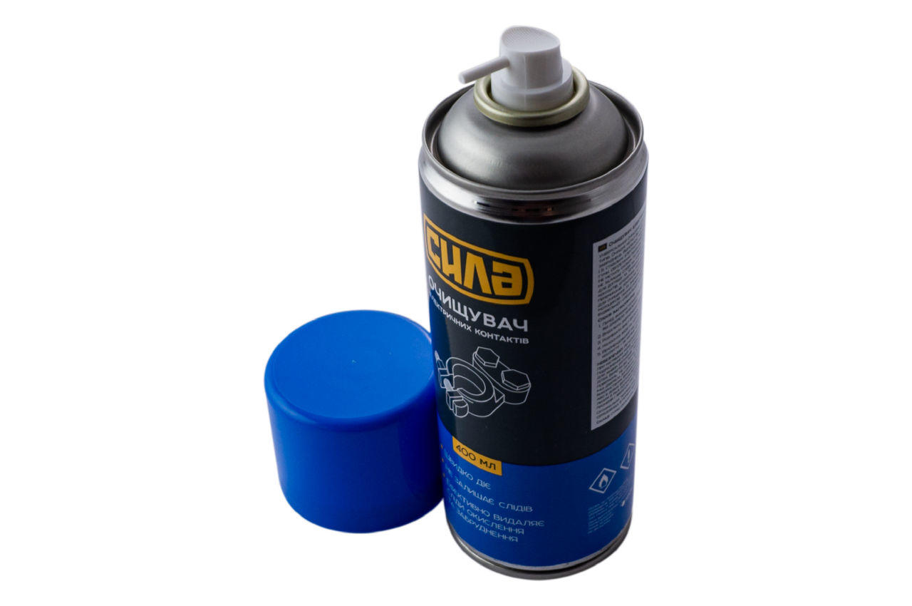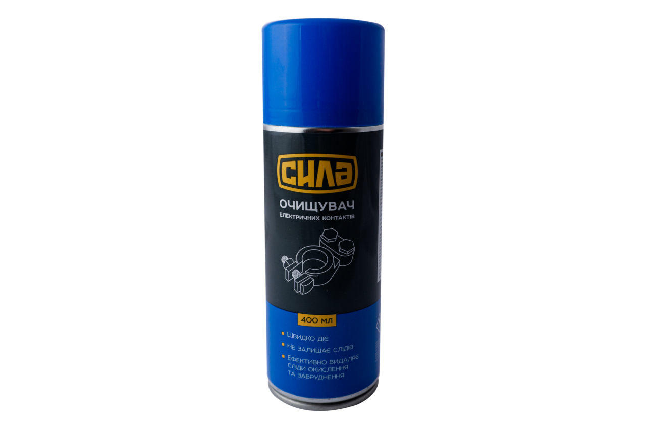 Очищувач електричних контактів Сила - використовується для очищення, знежирення та видалення вологи в контактах електромоторів, генераторів, стартерів, пускачів, регуляторів, стабілізаторів, розподільчих щитів, конденсаторів та обмоток котушок, деталей механізмів, поліграфічних матриць, обладнання для кондиціювання повітря.
