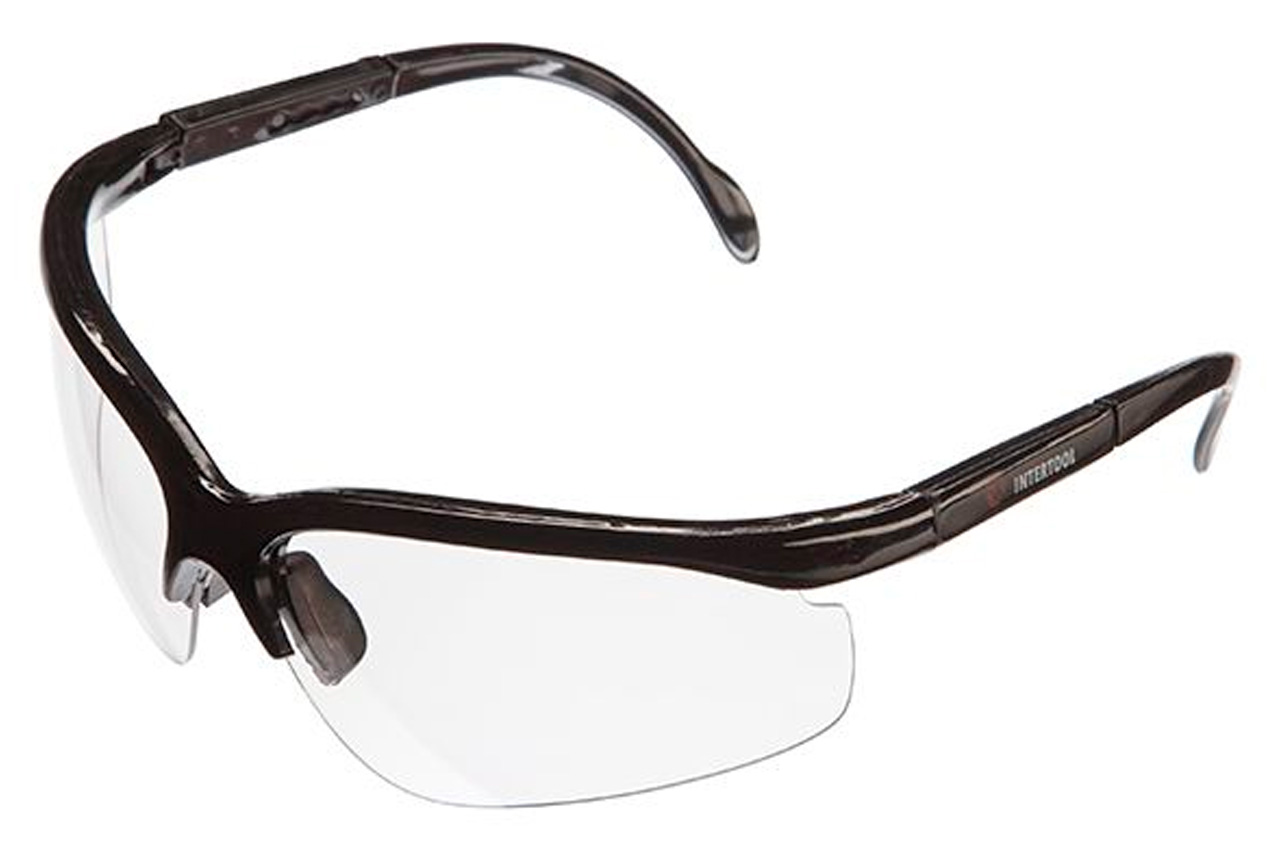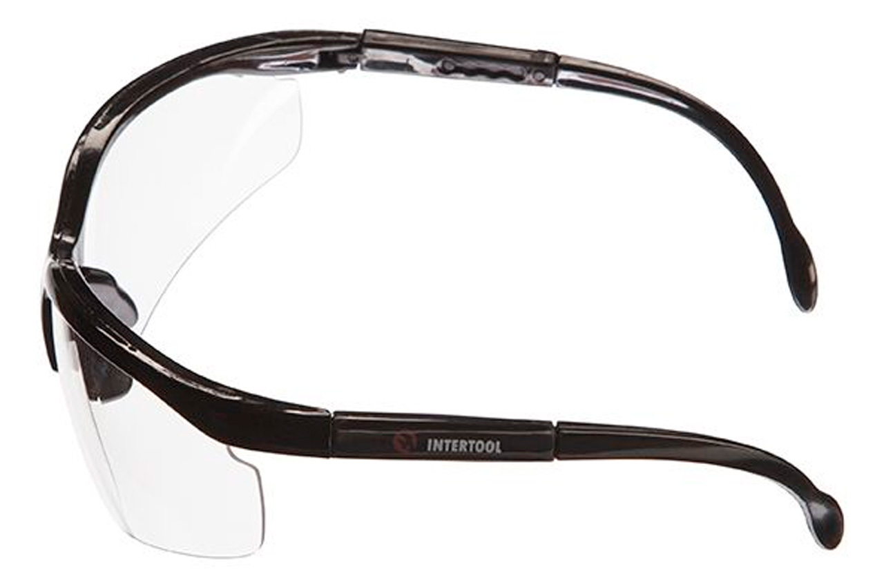 Окуляри захисні Intertool - виконані з міцного полікарбонату та захищають очі від механічних пошкоджень, що актуально під час виконання будівельних, монтажних робіт з різним інструментом, оскільки лінзи витримують удари дрібних твердих частинок. Також захищають від бризок різних рідин, крапель, пилу. Прозорі лінзи з полікарбонату забезпечують відмінну видимість. Ергономічна чорна оправа не викликає дискомфорту, гарантує зручну посадку окулярів на обличчі завдяки носоупорам та округлій формі.
