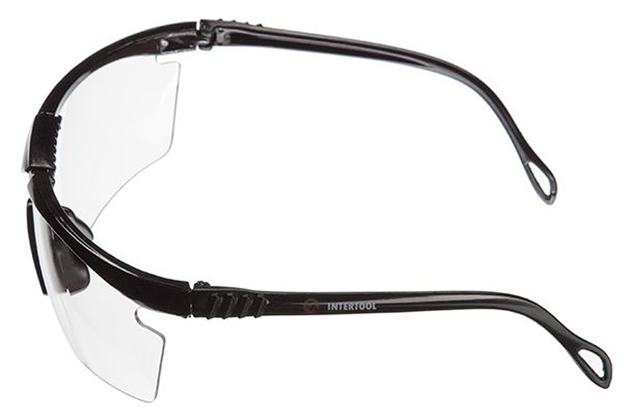 Окуляри захисні Intertool - виконані з міцного полікарбонату та захищають очі від механічних пошкоджень, що актуально під час виконання будівельних, монтажних робіт з різним інструментом, оскільки лінзи витримують удари дрібних твердих частинок. Також захищають від бризок різних рідин, крапель, пилу. Прозорі лінзи з полікарбонату забезпечують відмінну видимість. Ергономічна чорна оправа не викликає дискомфорту, гарантує зручну посадку окулярів на обличчі завдяки носоупорам та округлій формі.