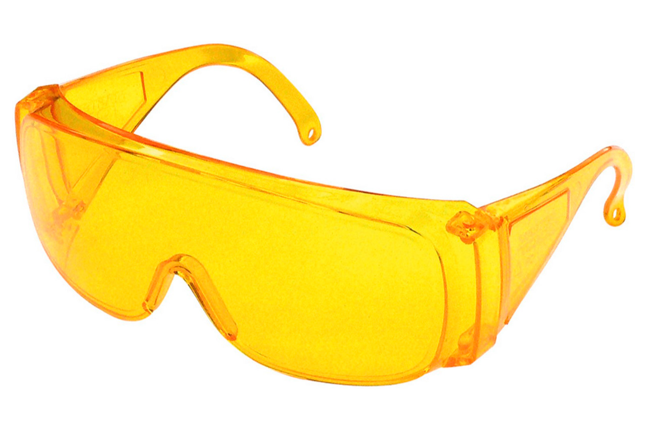 Окуляри захисні ударостійкі полікарбонатні жовтого кольору призначаються для захисту від механічних пошкоджень. Панорамна лінза з полікарбонату, світлопропускання 95%, пластикова оправа, регульована довжина дужок, захист під час ударів частинок вагою до 0,86 г, що летять зі швидкістю 45 м / с