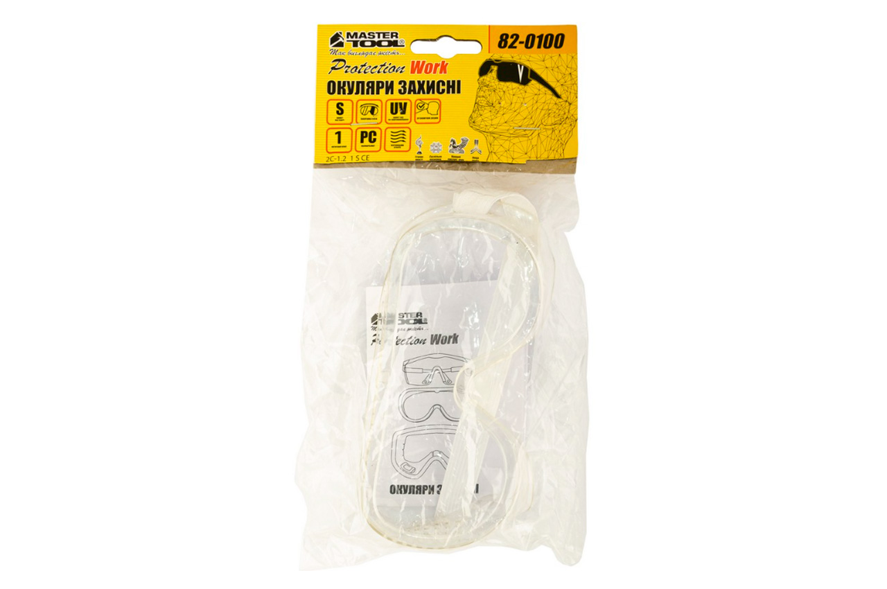 Призначені для захисту очей від бризок будівельних розчинів, води та сторонніх часток. Використовуються при роботі з електроприладами. Можуть вдягатися поверх коригуючих окулярів. Оснащені бічними захисними щитками і гумовою тасьмою.