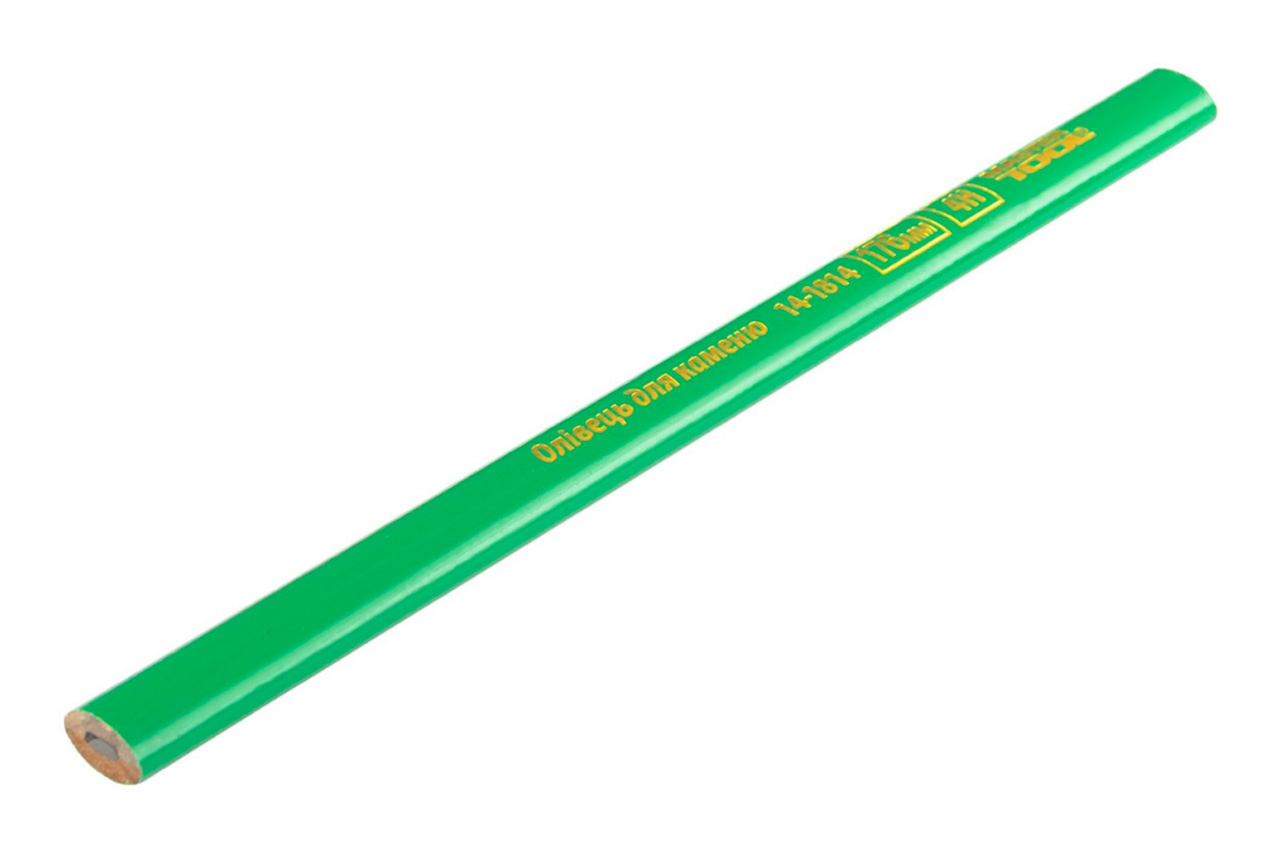 Олівець для розмітки по каменю та іншої шорсткою поверхні має твердість стрижня 4Н. Овальний корпус захищає пише стрижень при ударах і падіннях, надійно фіксується в руці. В упаковці 12 олівців з корпусом зеленого кольору, сірим стрижнем довжиною 250 мм.