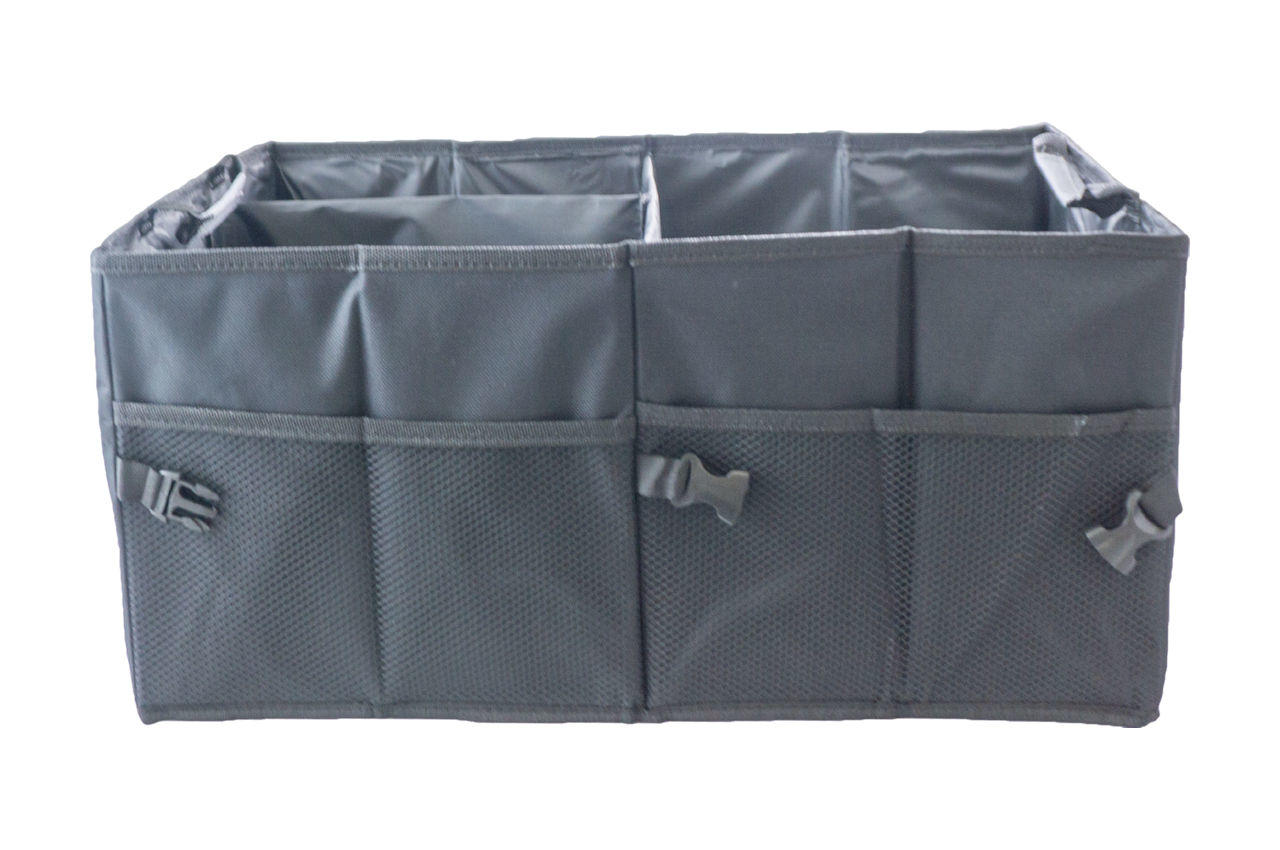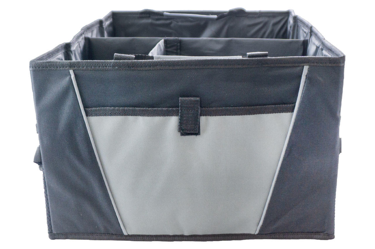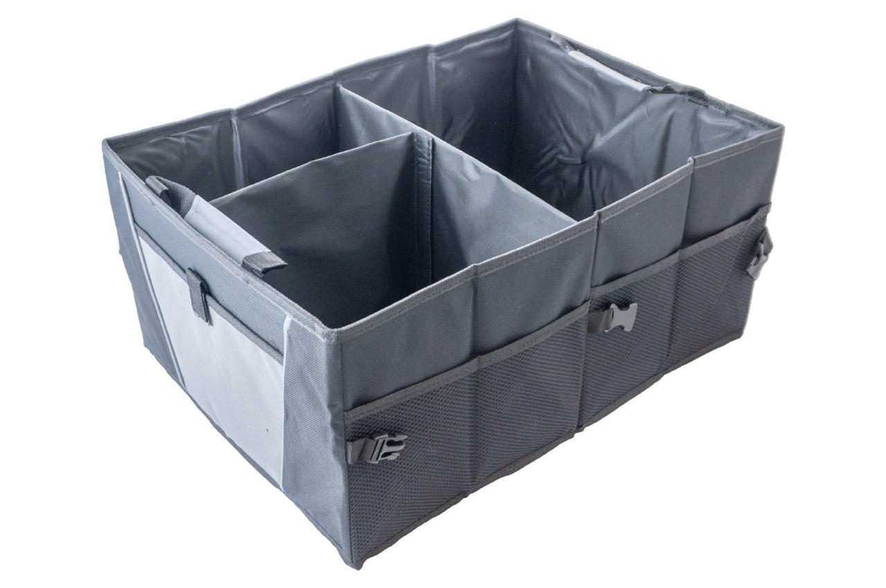 Організатор дозволяє впорядкувати вміст багажника, що значно спрощує пошук необхідних предметів і допомагає знизити рівень шуму в автомобілі під час поїздок, а також запобігає пошкодженню і забруднення оббивки багажника. Виготовлені зі щільної зносостійкої тканини, компактні в складеному вигляді, матеріал легко чистити від бруду, мають ручки для зручного транспортування. Висота 250мм