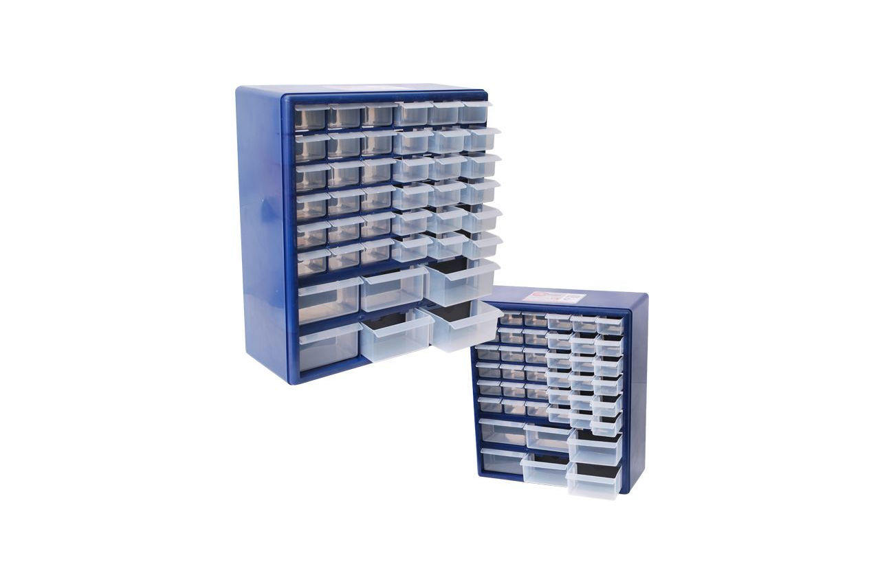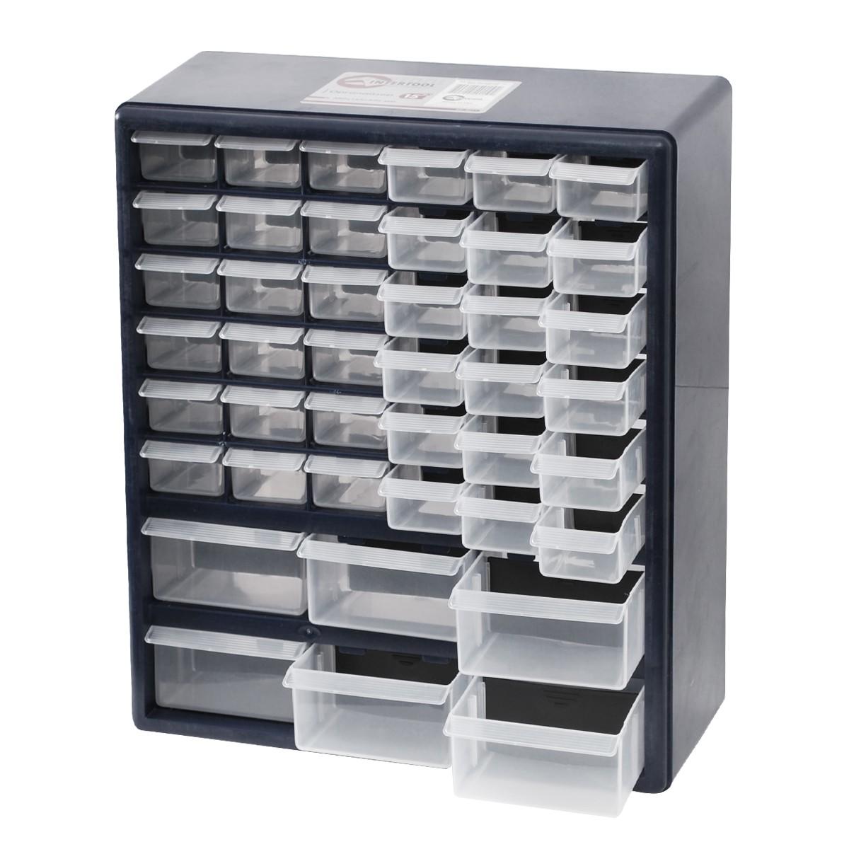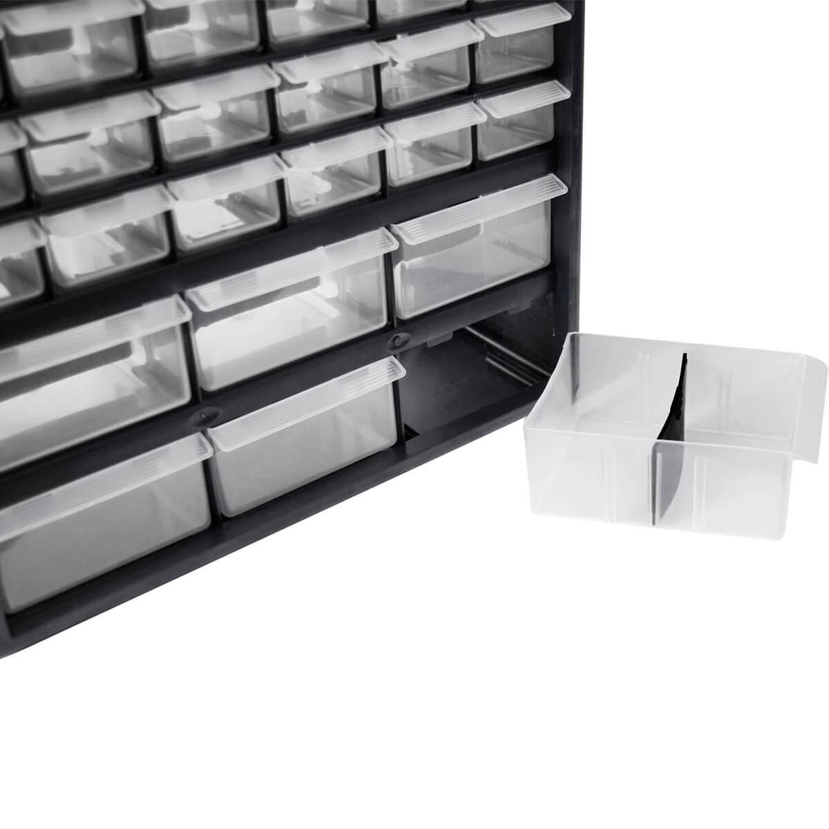 В даному органайзере є 42 відсіку. Кожна пластикова ємність органайзера розділена додаткової перегородкою. Перегородку можна рухати, змінюючи її місцями в трьох положеннях. Габаритні розміри органайзера наступні: 380х165х440 мм. 6 нижніх осередків великі (135х110х67 мм), а інші маленькі (135х50х35) Габаритні розміри: 380x165x440 мм