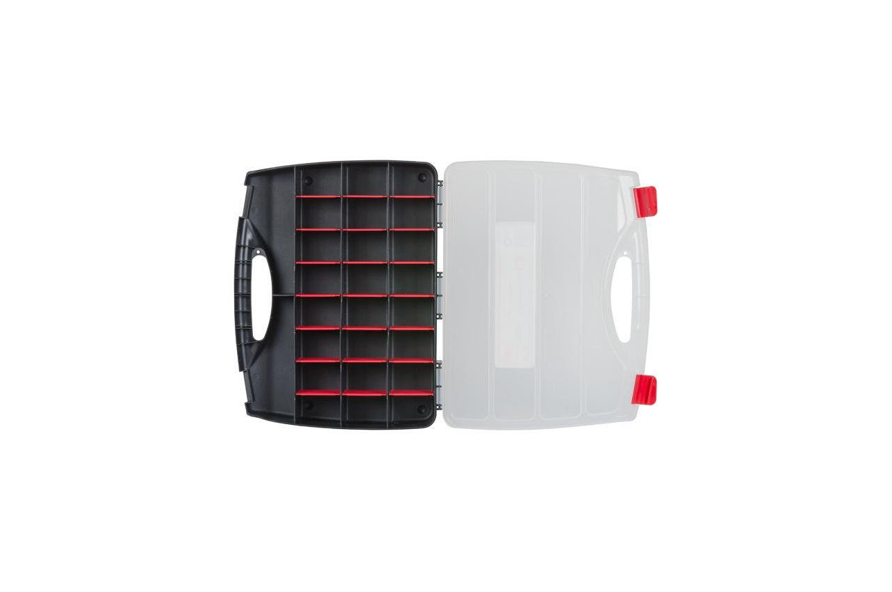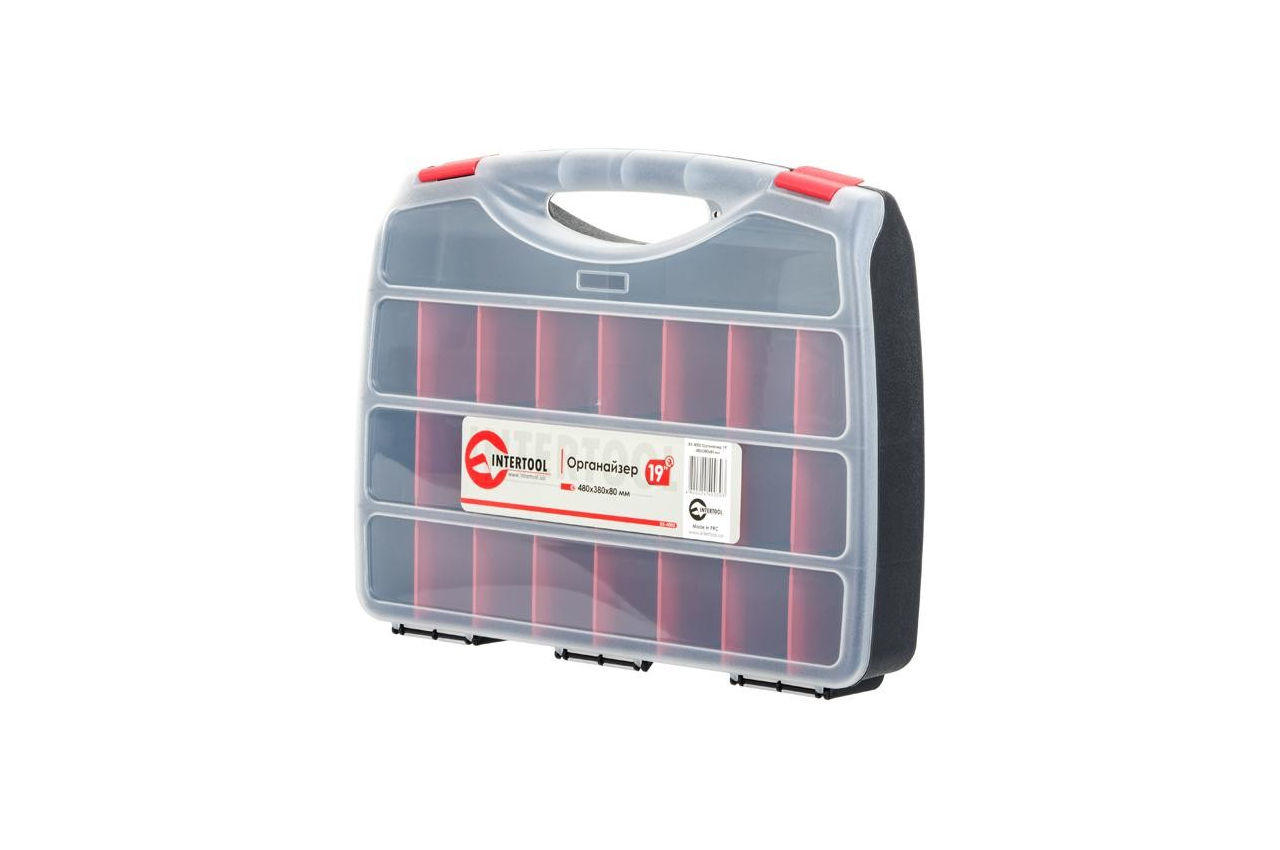 Організатор 19 "має габаритні розміри 480х380х80 мм. Виконаний з міцного пластику з прозорою кришкою. Все поперечні перегородки знімаються. Габаритні розміри: 480x380x80 мм