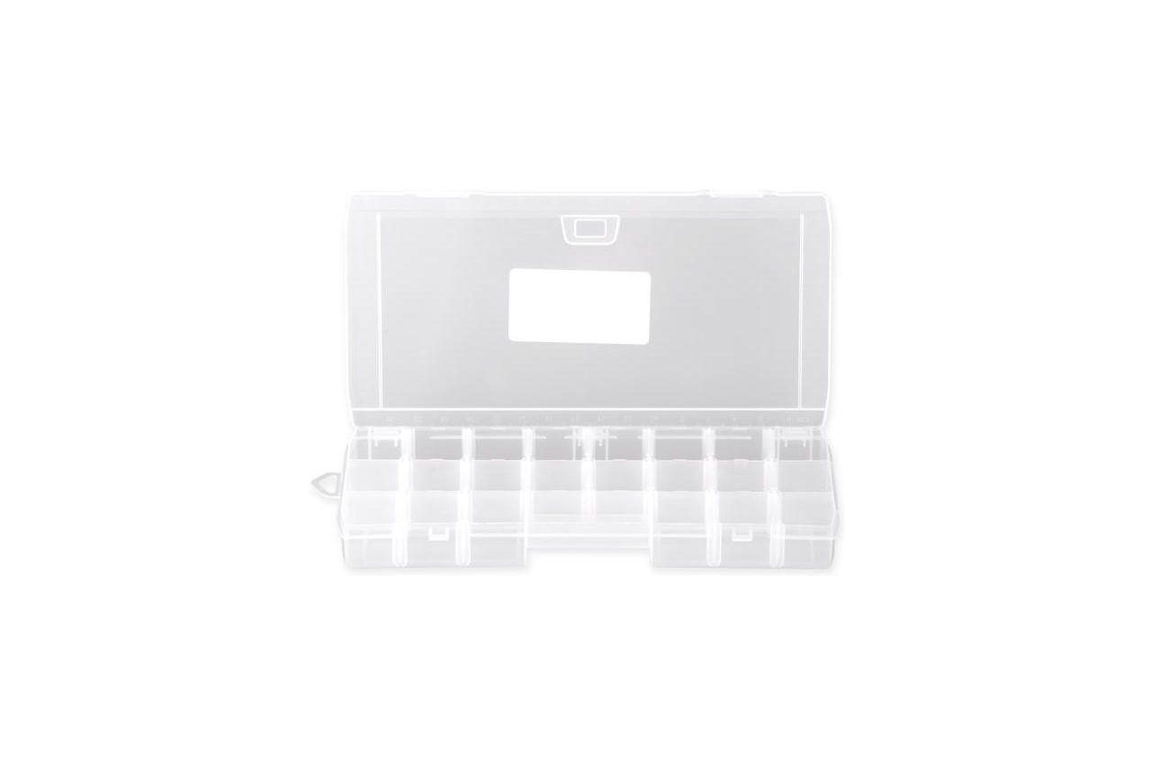 Органайзер можна використовувати для зберігання мікросхем, цвяхів, гвинтів, гайок, болтів, шайб, сережок, намистин, канцелярських кнопок, затискачів, рибальських снастей та інших дрібних деталей, предметів. Виконаний із міцного прозорого пластику. Габаритні розміри: 385x200x50 мм