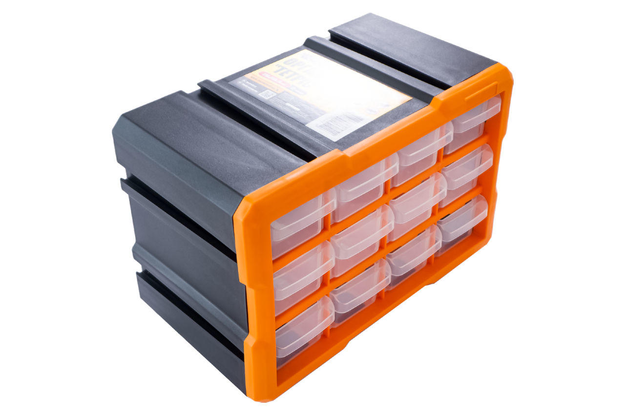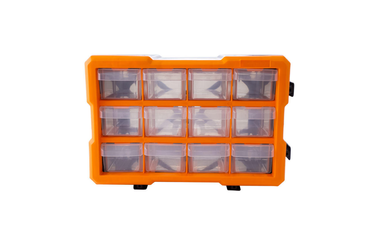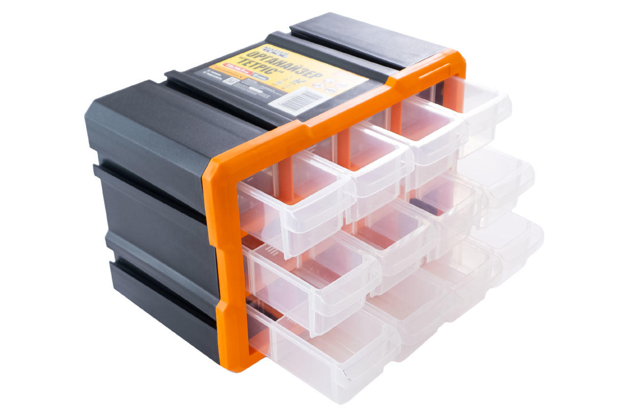 Призначаються для зберігання предметів маленького розміру. • ударостійкий ABS пластик • можливість складання декількох органайзерів цього типу між собою • висувні секції • 12 секцій