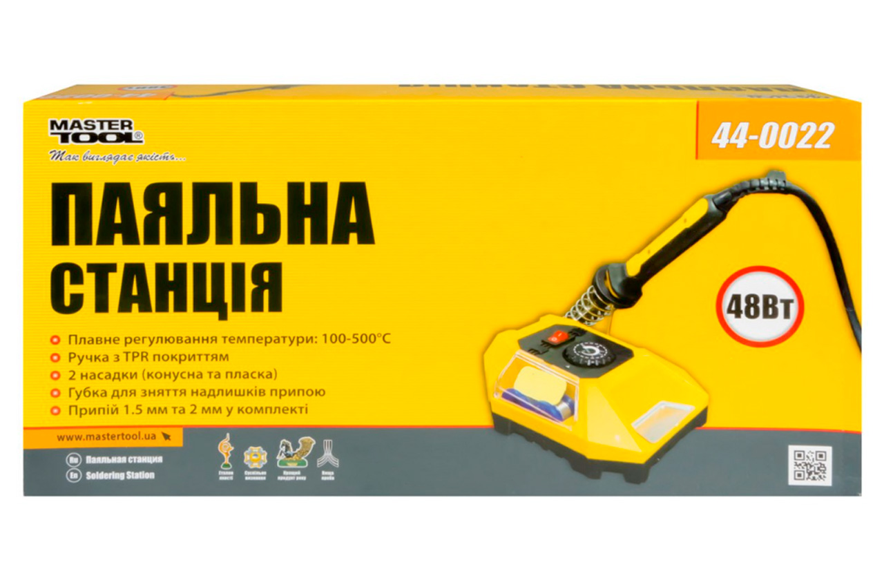 Монтаж-демонтаж електронних компонентів і провідників на друковані плати за допомогою свинцево-олов'яного припою і флюсу; плавне регулювання температури: 100-500 ° C; ручка з термостійкого пластика і TPR покриттям; змінні насадки: конусна, плоска; віскозна губка для зняття надлишків припою; припій ПОС 61 (1,5 мм і 2 мм)