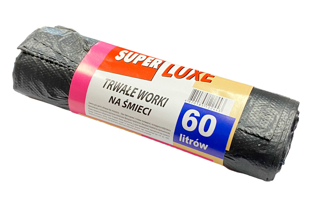 Міцні поліетиленові пакети для сміття об’ємом 60 літрів у рулоні по 10 штук. Оптимально підходять для використання вдома, в офісі чи на виробництві. Стійкі до розривів, зручні у використанні та легко відриваються від рулону.
