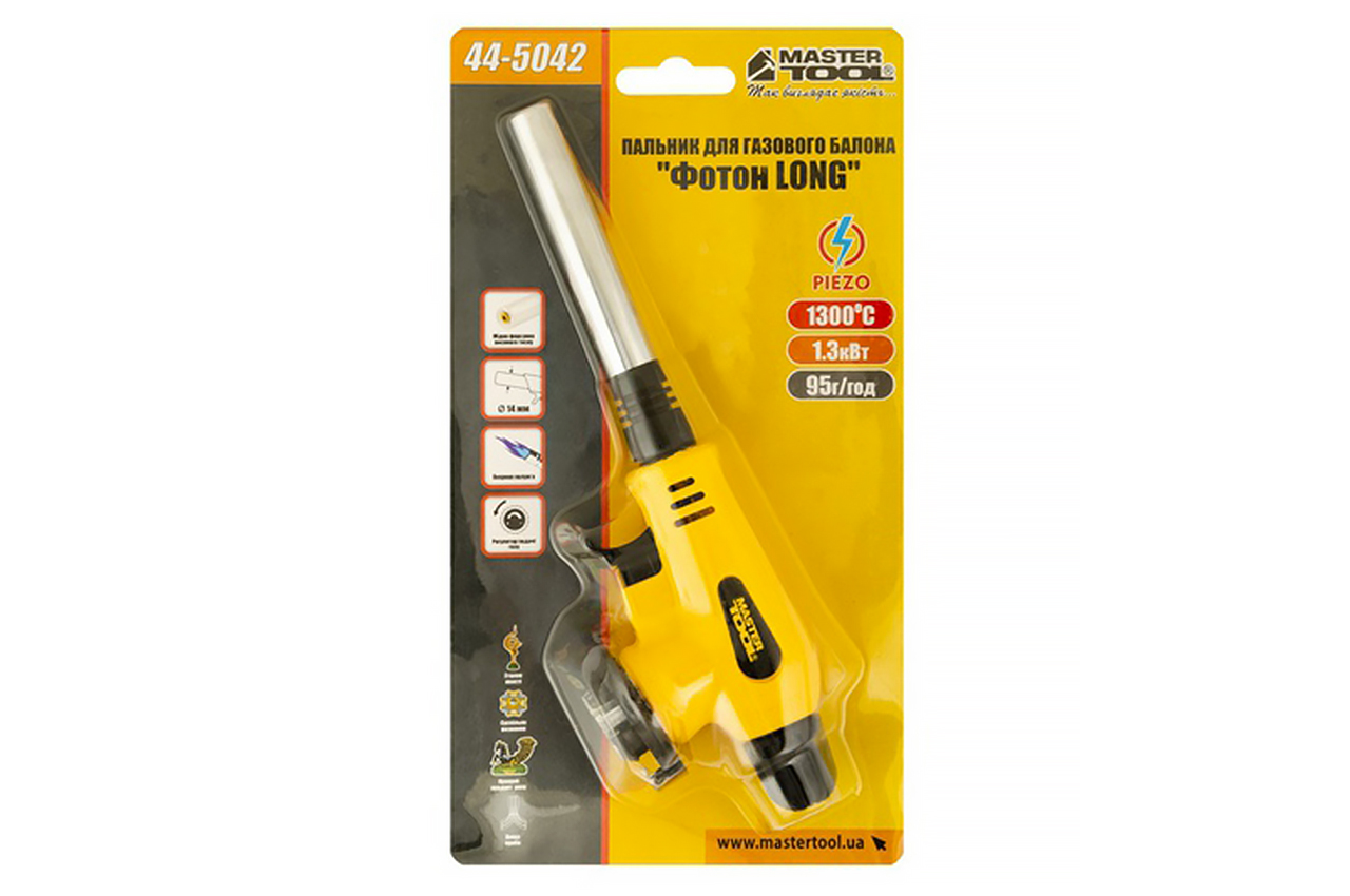 Пальник газовий з п'єзопідпалом Mastertool - ⌀14мм фотон Long