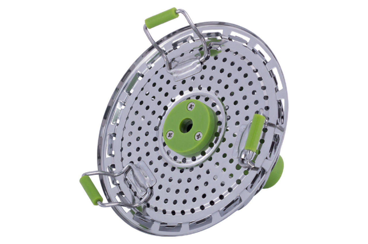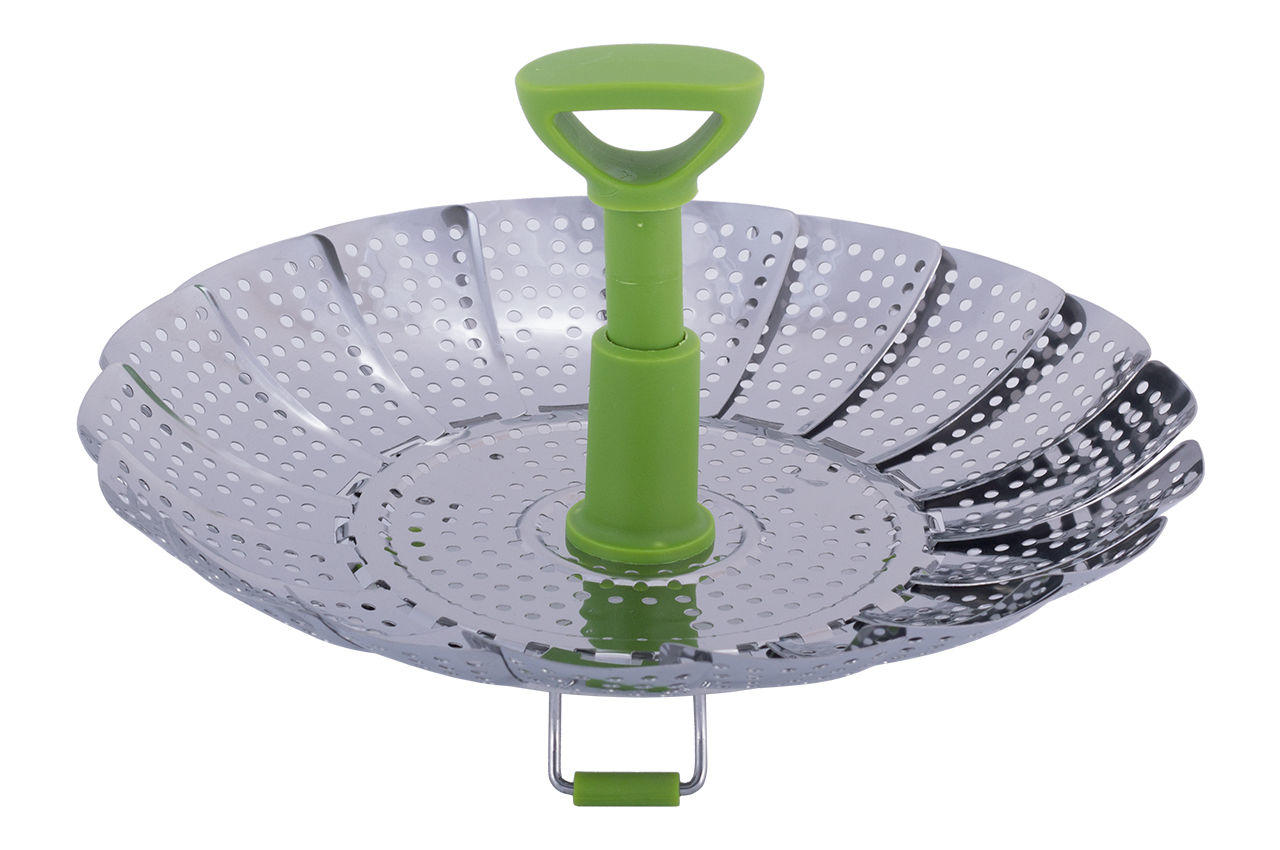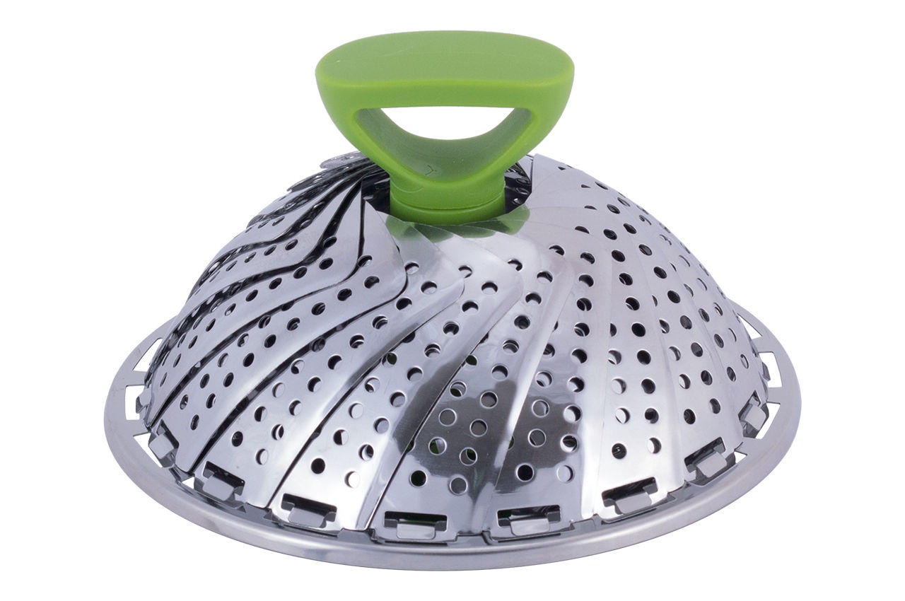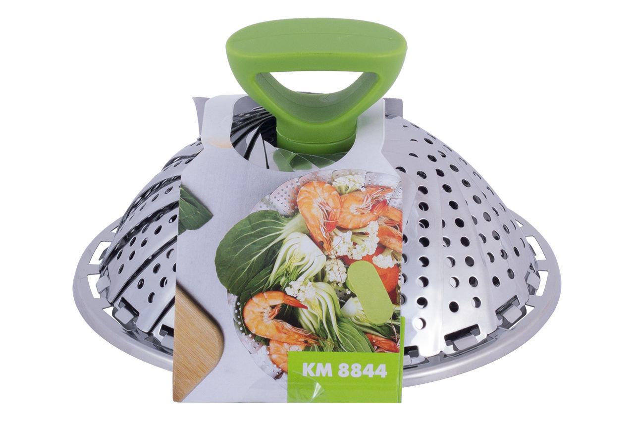 Пароварки Kamille виготовлені з високоякісних матеріалів з використанням новітніх технологій виробництва, завдяки чому вони підходять для інтенсивного щоденного використання, а їх естетичний зовнішній вигляд неодмінно підійде до дизайну Вашої кухні. Матеріал: нержавіюча сталь. Матеріал ручки: пластик, силікон (на ніжках). Висота: в складеному вигляді 8,5 см, в расложенном вигляді 13см. Діаметр: від 13,8 см до 23см. Спосіб кріплення ручки: гвинтове. Тип плити: електрична, склокерамічна, індукційна, газова.