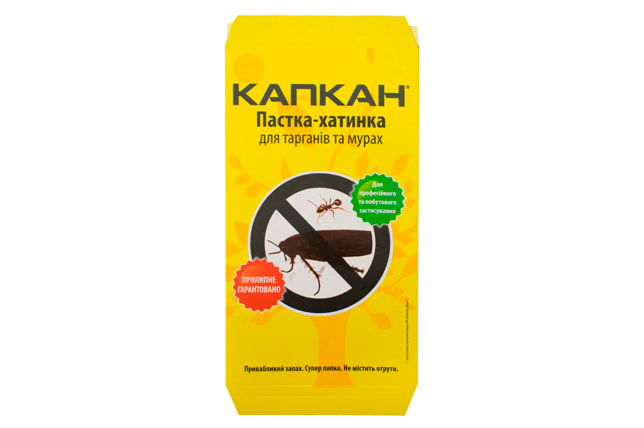 Ефективна клейова пастка Капкан розміром 190 x 80 мм для боротьби з тарганами та мурахами. Забезпечує швидке та безпечне знищення комах у житлових, господарських та складських приміщеннях. Легко встановлюється в місцях скупчення шкідників та не містить отруйних речовин.