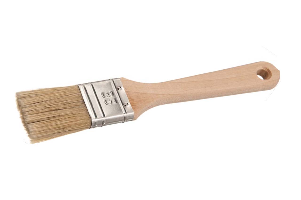 Універсалний флейцевий пензл підходить для будь-яких малярних робіт. Використовують з масляним фарбам, будь-якими видами лаків і антисептиками. Натуральна щетина від природи має розщеплені кінчики і прекрасно згладжує (флейцами) поверхні. Ворс надійно закріплений в металеву оправу і не випадає. Ручка зручна і не вислизає з долоні. Ширина 65 мм